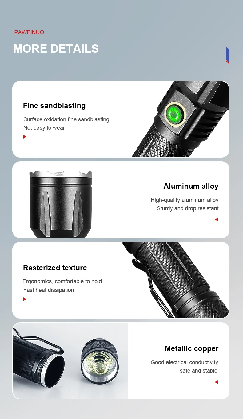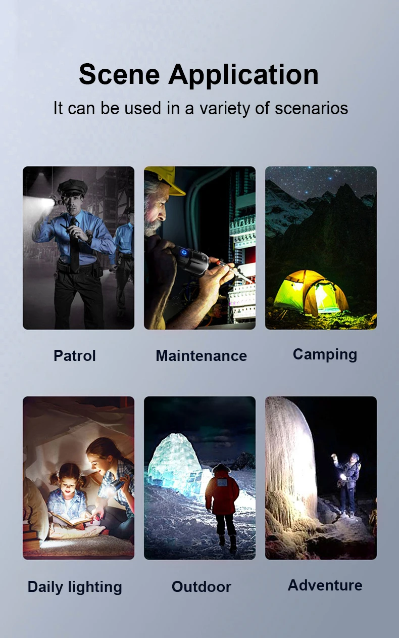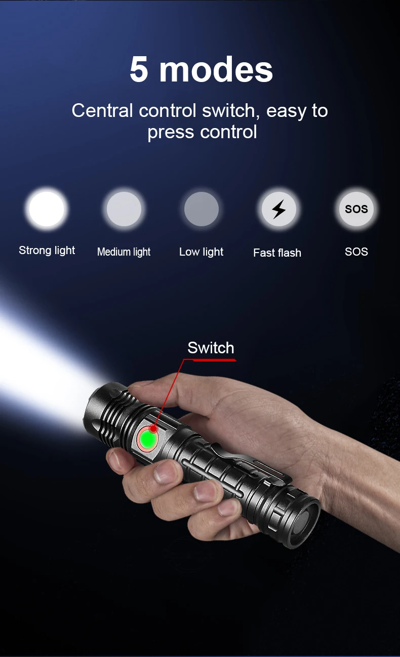 • 5 режимов: сильный светильник-средний Светильник-низкий светильник-стробоскоп-SOS