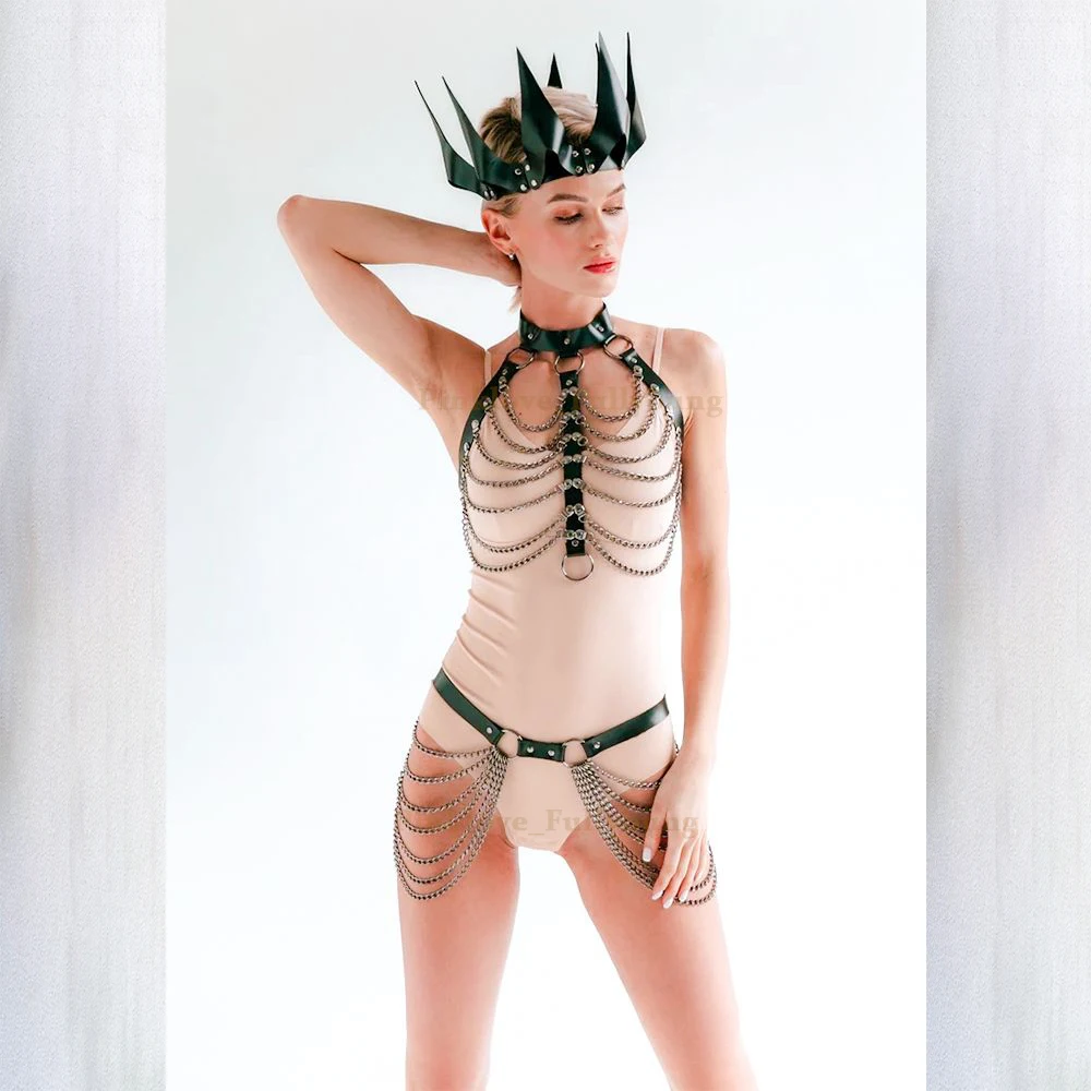 Винтажная корона, повязка на голову, сексуальная женская шея, связывание, кожа, жгут, нижнее белье, экзотическая цепочка с кисточками, аксессуары, вечерние, Goth, поясной ремень