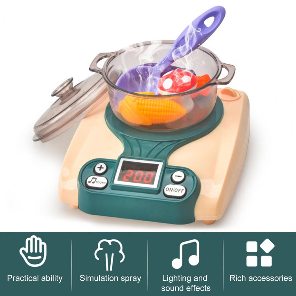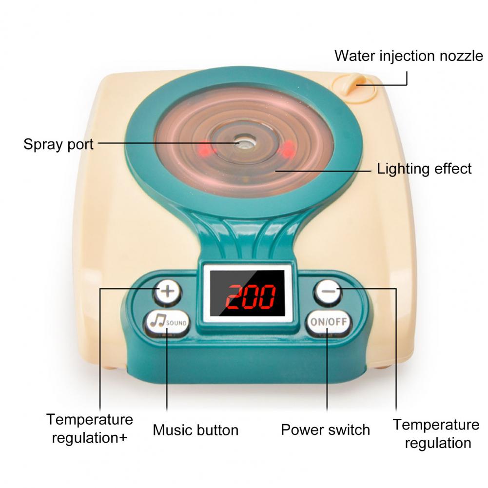 Яркий цвет и милый внешний вид легко привлекут внимание детей, весело проводя время. Добавьте воду в порт для впрыска воды, и она сделает искусственное распыление. Он имеет эффект искусственного освещения, имитирующий звуковой эффект тушения супа и приготовления овощей.