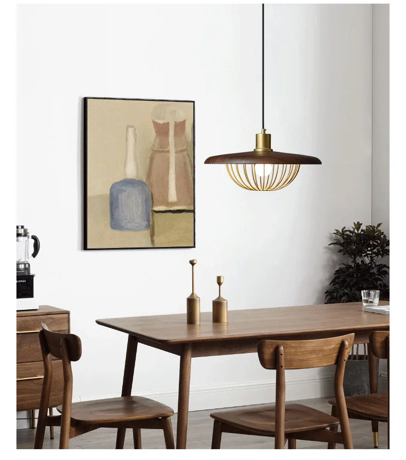 Шляпа абажур кулон люстра Wabi-sabi японский стиль освещение Liying homesh цвет ореха круглый ресторан бар столовая потолочная лампа
