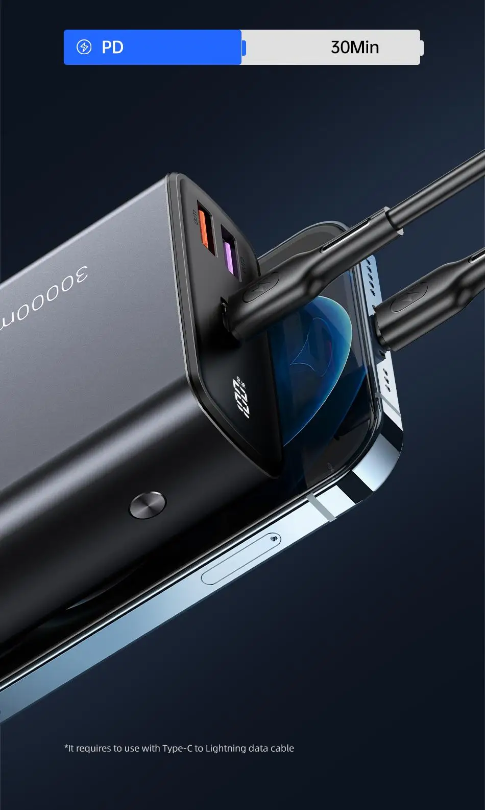 4. Большая емкость 30000 мАч, обеспечивает достаточную мощность.