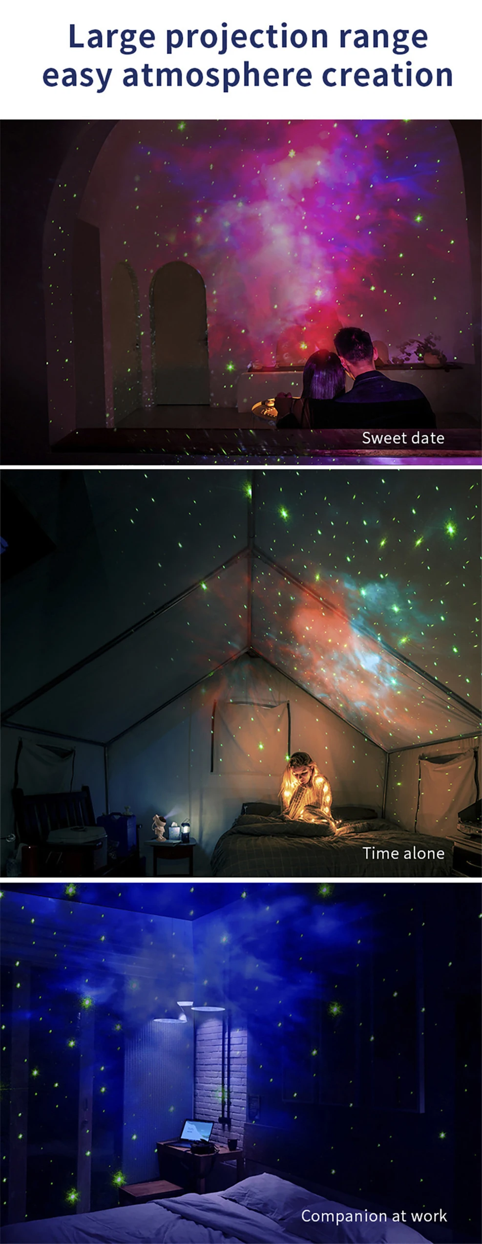 6. Большой диапазон проекции, подходит для различных сцен. Подходит для семейного сбора/дня рождения/DJ-бара/караоке/игровой комнаты/домашнего кинотеатра/рождества/свадьбы.