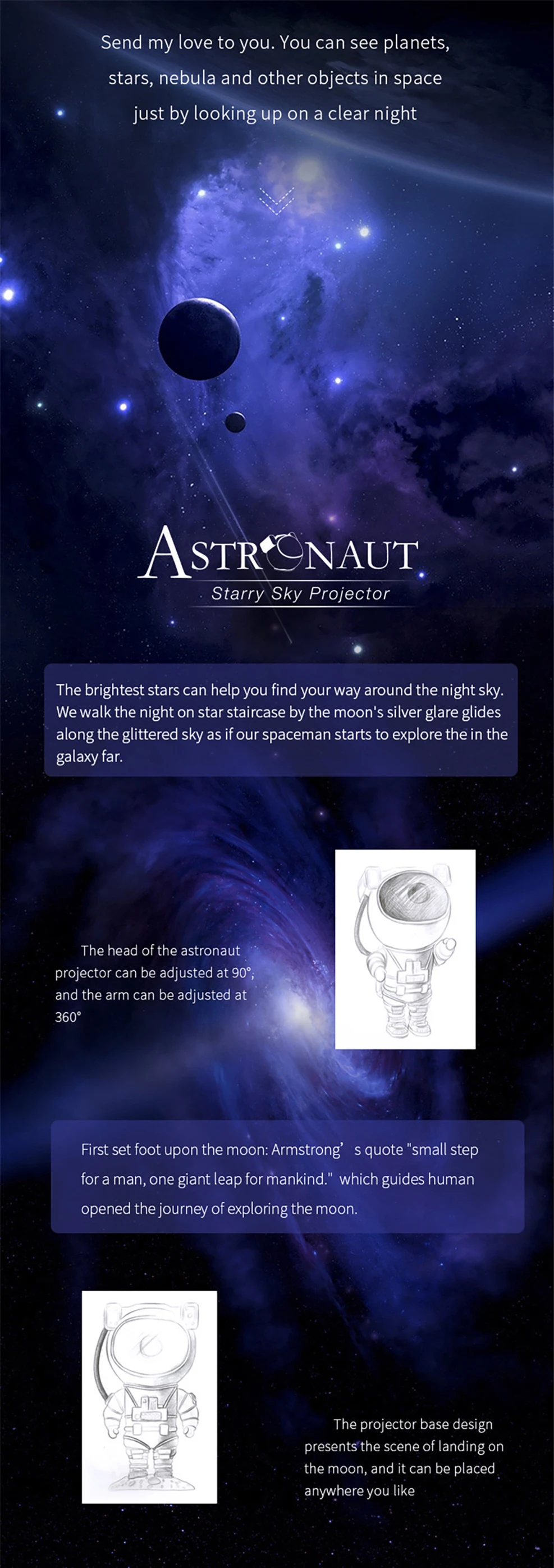 5. Лучший подарок для семьи и детей: Наслаждайтесь едой под звездами, Создайте расслабляющую спа-среду или добавьте функции в свой домашний кинотеатр за несколько секунд. Этот проектор космонавта может играть роль, меняющую игру, для любого места в вашем доме. Это также идеальный подарок для взрослых и детей.