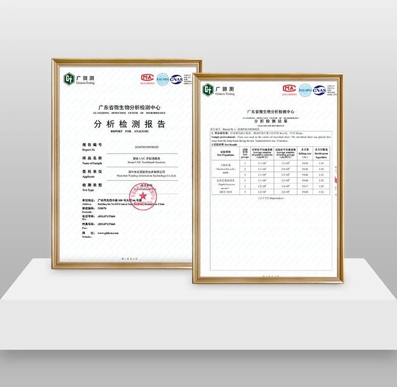 Gold waves of ultraviolet rays can destroy 99.99% bacteriaDeep ultraviolet lamp (UVC-LED) is integrated into the sterilizer emitting 270Nm ~ 285nmuvc UV light strips,Which can quickly destroy DNA or RNA in conventional bacteria and viruses such as Escherichia coli,Auaureus, anthrax, Corynebacteria diphtery,Clostridium tetanus, etc. D., which leads to the total death of cells,Thus completely sterilizing the toothbrush.