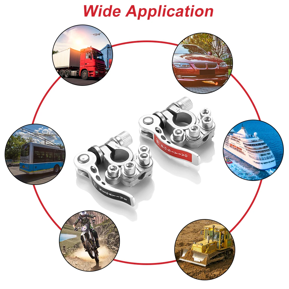 Соединитель клеммы аккумулятора совместим с автомобилями, грузовиками, караванами, грузовиками, пикапами, автобусами и т. д.