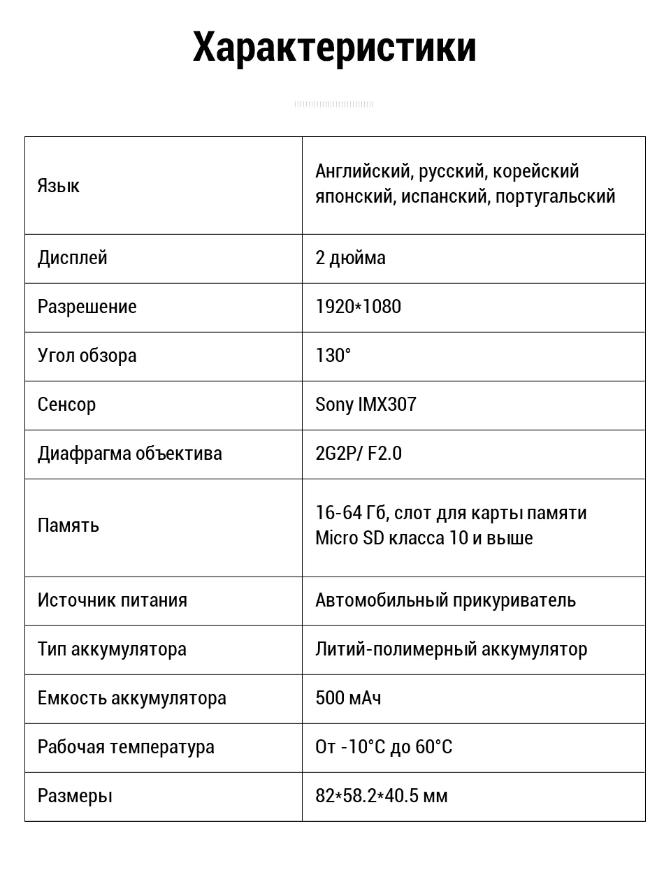 Характеристики