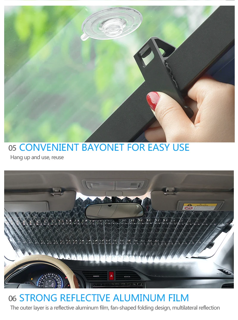 1. Выдвижная складная шторка лобового стекла автомобиля, Восток для использования и хранения;