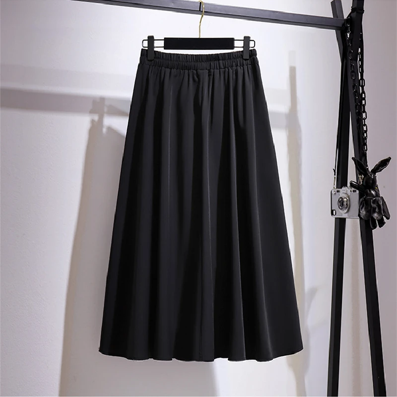 Новинка 2021, женская летняя длинная юбка размера плюс для женщин, большие повседневные свободные трапециевидные черные плиссированные юбки 3XL 4XL 5XL 6XL 7XL FT731