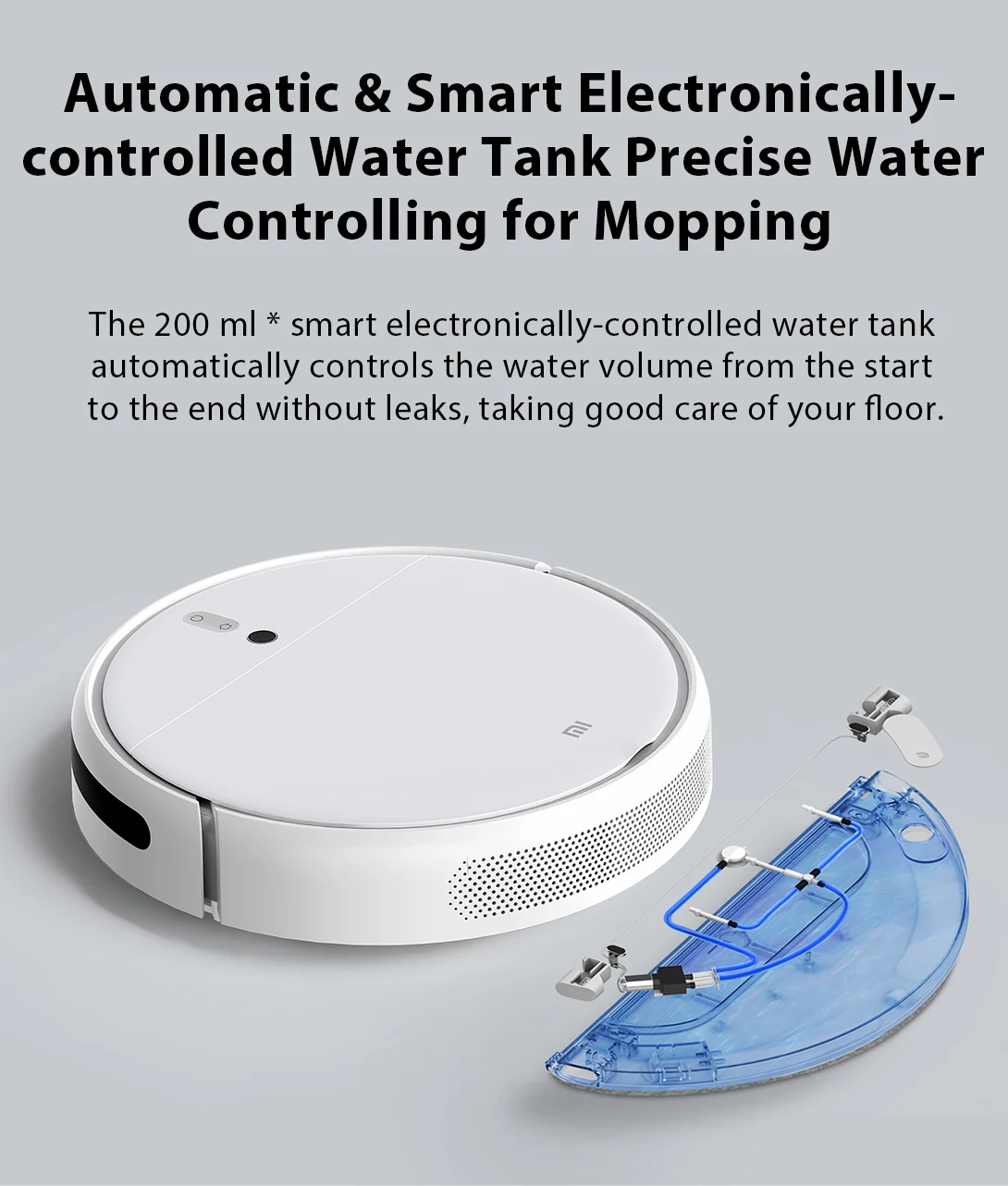 Умный резервуар для воды с электронным управлением объемом 200 мл* автоматически регулирует объем воды от начала до конца без утечек, заботясь о вашем полу.