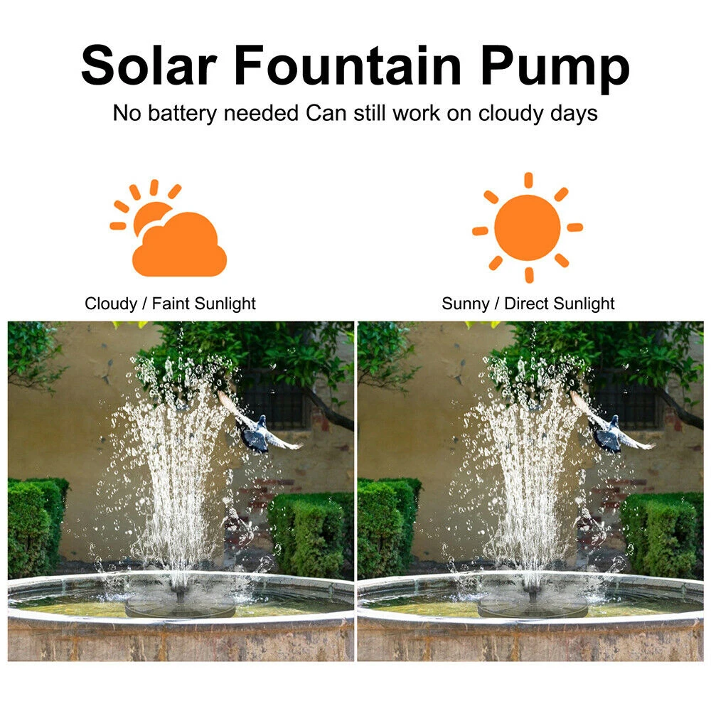 Высота распыления воды: 30-50 см, подключение различных сопла, высота распыления воды будет отличаться. Когда солнечная панель получает достаточное количество солнечного света, водяной насос начнет работать в течение 3 секунд.