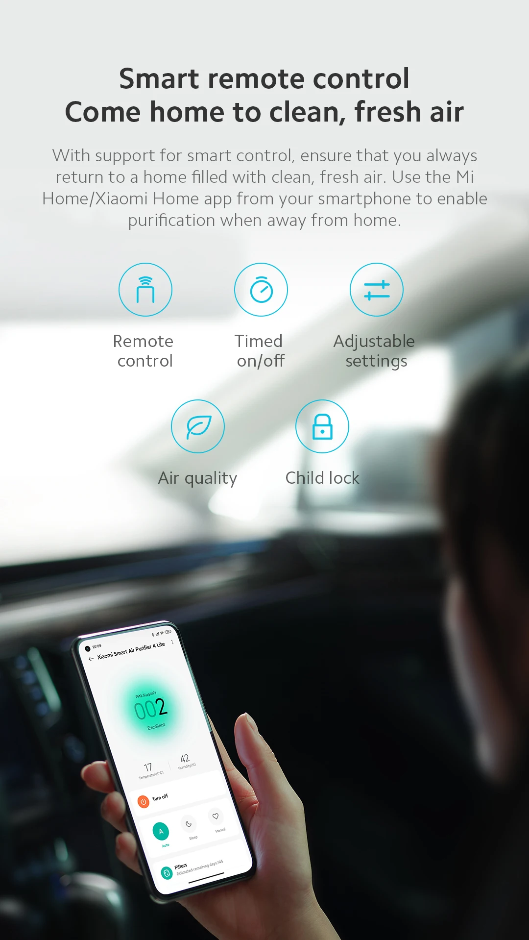 С поддержкой интеллектуального управления, убедитесь, что вы всегда возвращаетесь в дом, наполненный чистым, свежим воздухом. Используйте Mi