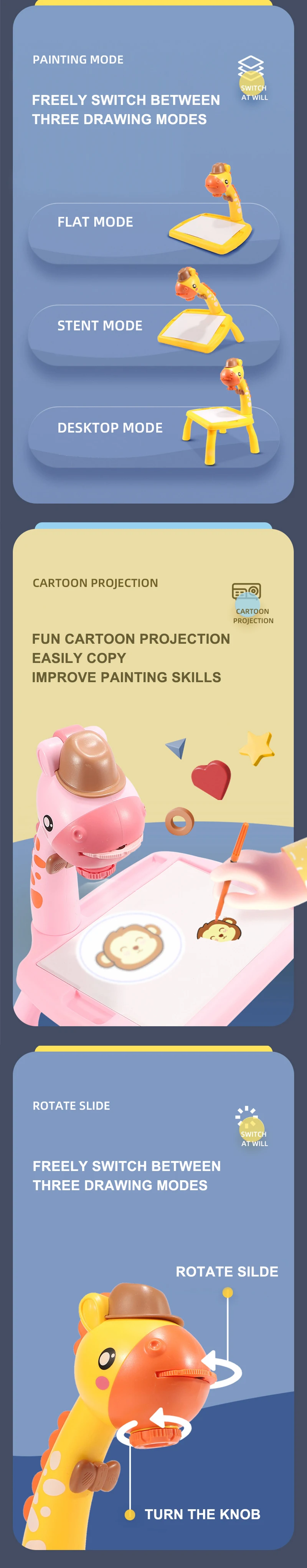 Дети могут рисовать на основе рисунка, проецируемого проектором на столе или в книге для рисования