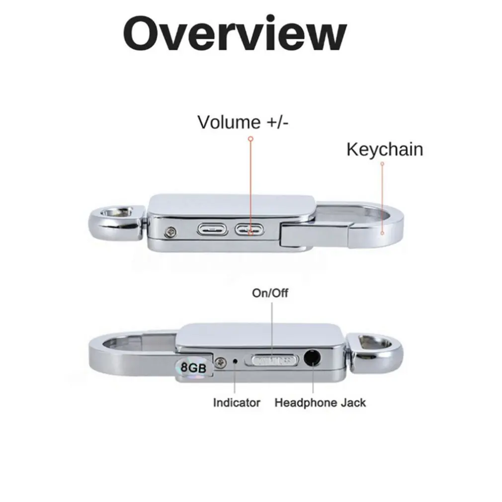 Описание:Это цифровой диктофон с внутренней памятью 4 ГБ/8 ГБ/16 ГБ/32 ГБ, прост в использовании, выглядит как брелок. Вы можете регулярно использовать в качестве брелока и записывать аудио, когда это необходимо, просто сдвинув кнопку питания.
