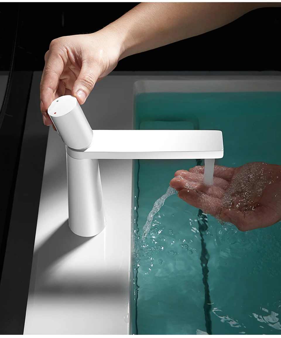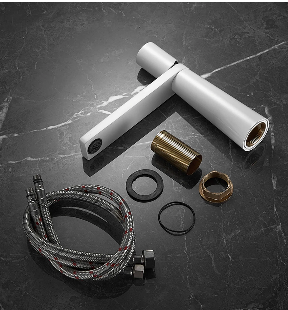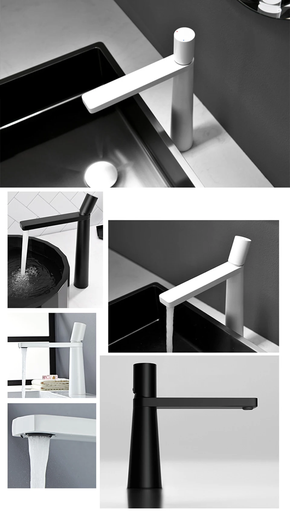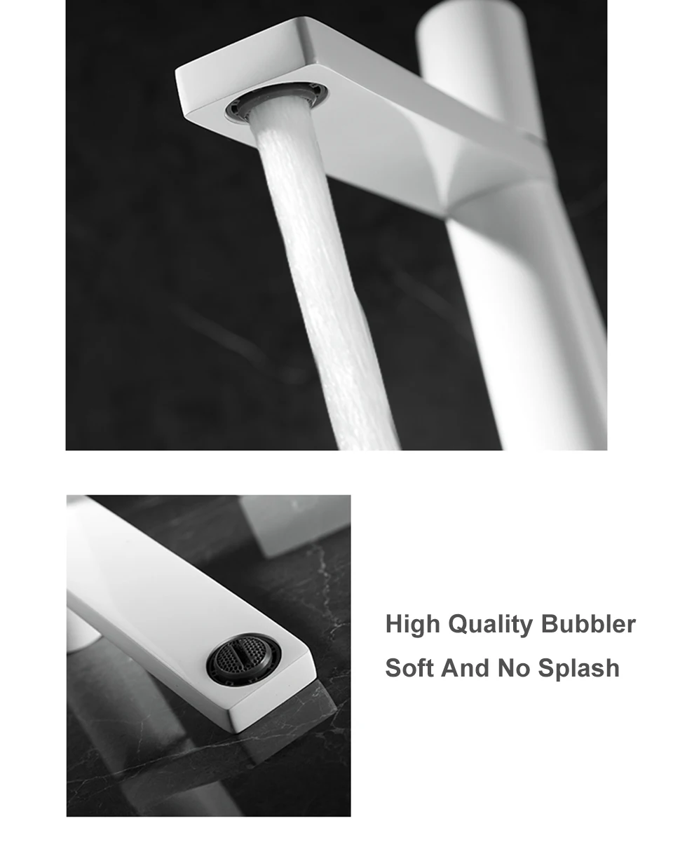 Matte White Basin Faucet Bathroom Sink Faucet Single Handle Hot Cold Water Crane Vintage Wash Mixer Tap Deck Mounted High Faucet