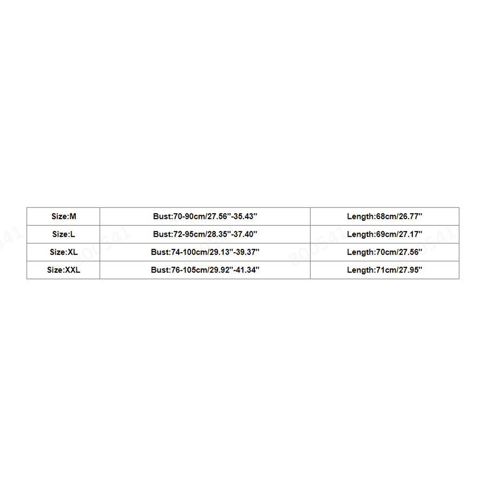 Размеры Бюст Длина М 70-90 см/27,56 ''-35,43'' 68 см/26,77'' L 72-95 см/28,35 ''-37,40'' 69 см/27,17'' XL 74-100 см/29,13 ''-39,37'' 70 см/27,56'' XXL 76-105 см/29,92 ''-41,34'' 71 см/27,95''