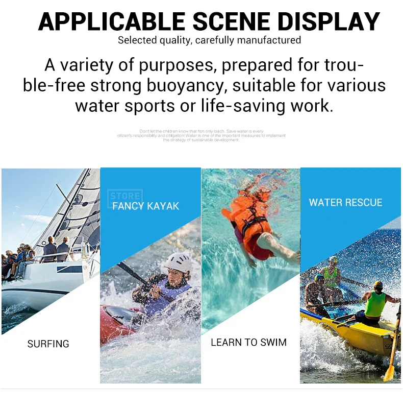 Области использования: Морская рыбалка, плавание, рафтинг, обратное плавание, серфинг, катание на лодках, Рок Рыбалка, гидроциклы, борьба с наводнениями и т. Д.