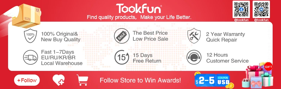 Магазин TOOKFUN-это качественный магазин для покупок, наша вера в то, что мы придерживаемся высококачественных продуктов, быстрого и вежливого обслуживания, лучших цен, помогаем дорогим покупателям быстро найти идеальный продукт, уменьшить сложность выбора продукта. Мы надеемся на распространение здоровья и умности среди большего числа семей, Увеличьте счастье своей семьи, наслаждайтесь лучшей жизнью и Наслаждайтесь временем. Мы с нетерпением ждем вашего заказа, это доверие и ответственность, мы будем защищать его. Большое спасибо. Если вам нравятся наши товары, пожалуйста, добавьте наш магазин в список «Мои любимые».