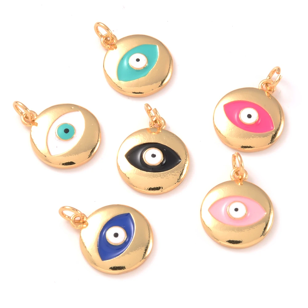 Название: многоцветные капельные масляные эмалевые амулеты со сглаза медные Золотые круглые подвески подходят для DIY ожерелья, серьги, браслет, ювелирные изделия материал: медь и 18K Позолоченные & Эмаль & кубический цирконий