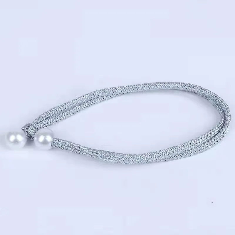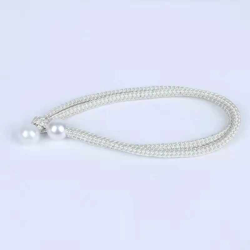 Материал: пряжка с имитацией жемчуга + плетеная веревка