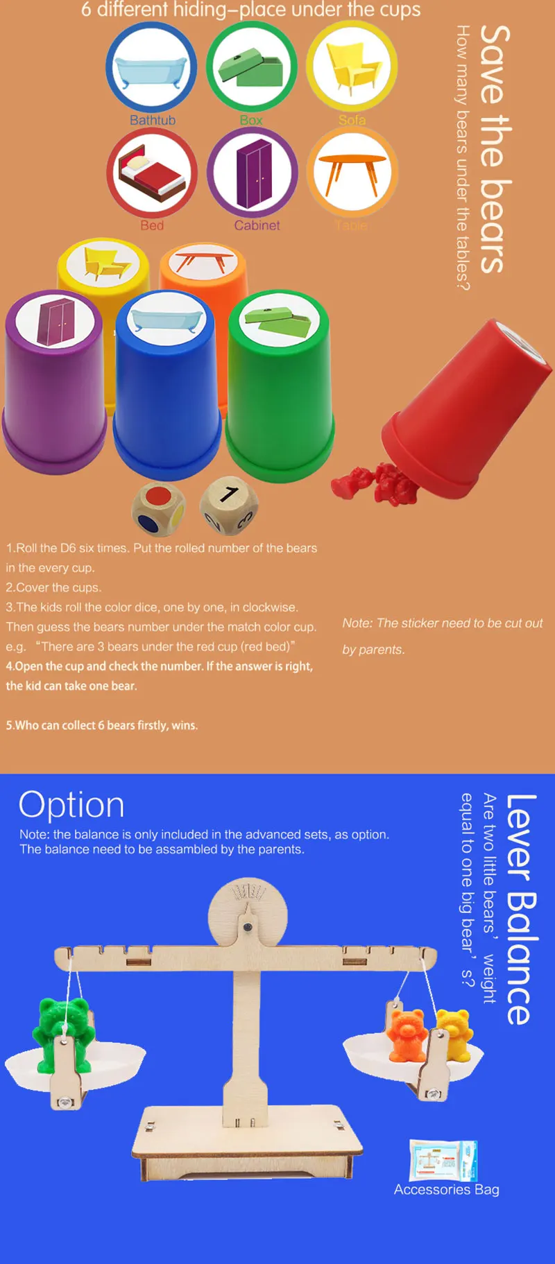 C: большой медведь X 30 шт. + маленький медведь X 60 шт. + коробка X 1 + мягкая чашка X6 + зажим X 2 + Кости X 2 + карты X 1 Набор