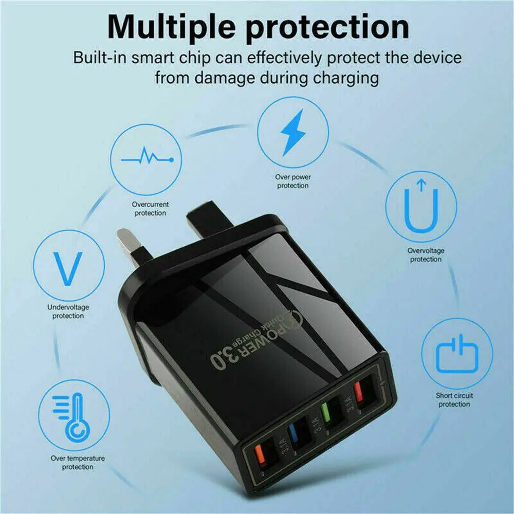 С 4 usb-портами для зарядки, может заряжать четыре устройства, тем временем, экономя время.