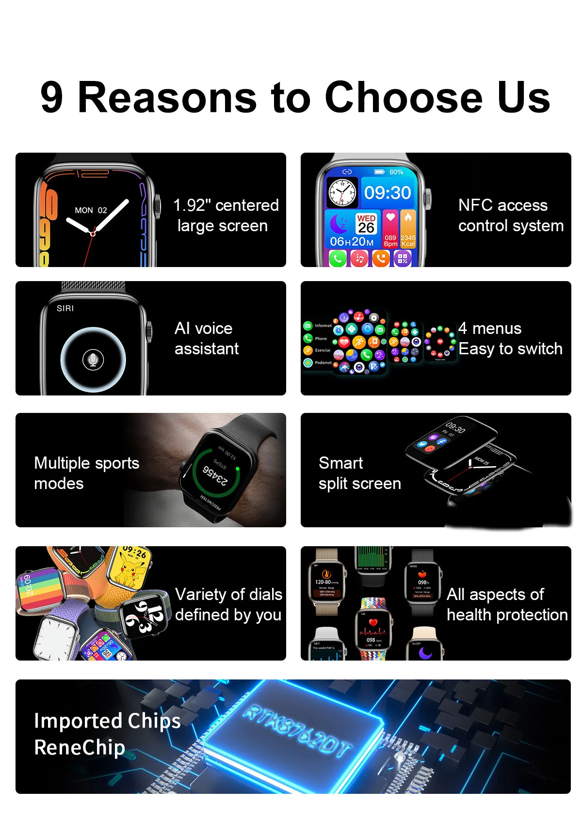 Оригинальные часы iwo S7 MAX 1,92 дюйма серии 7 NFC Ai Siri голосовой помощник Bluetooth Вызов Беспроводное зарядное устройство IP67 Смарт-часы