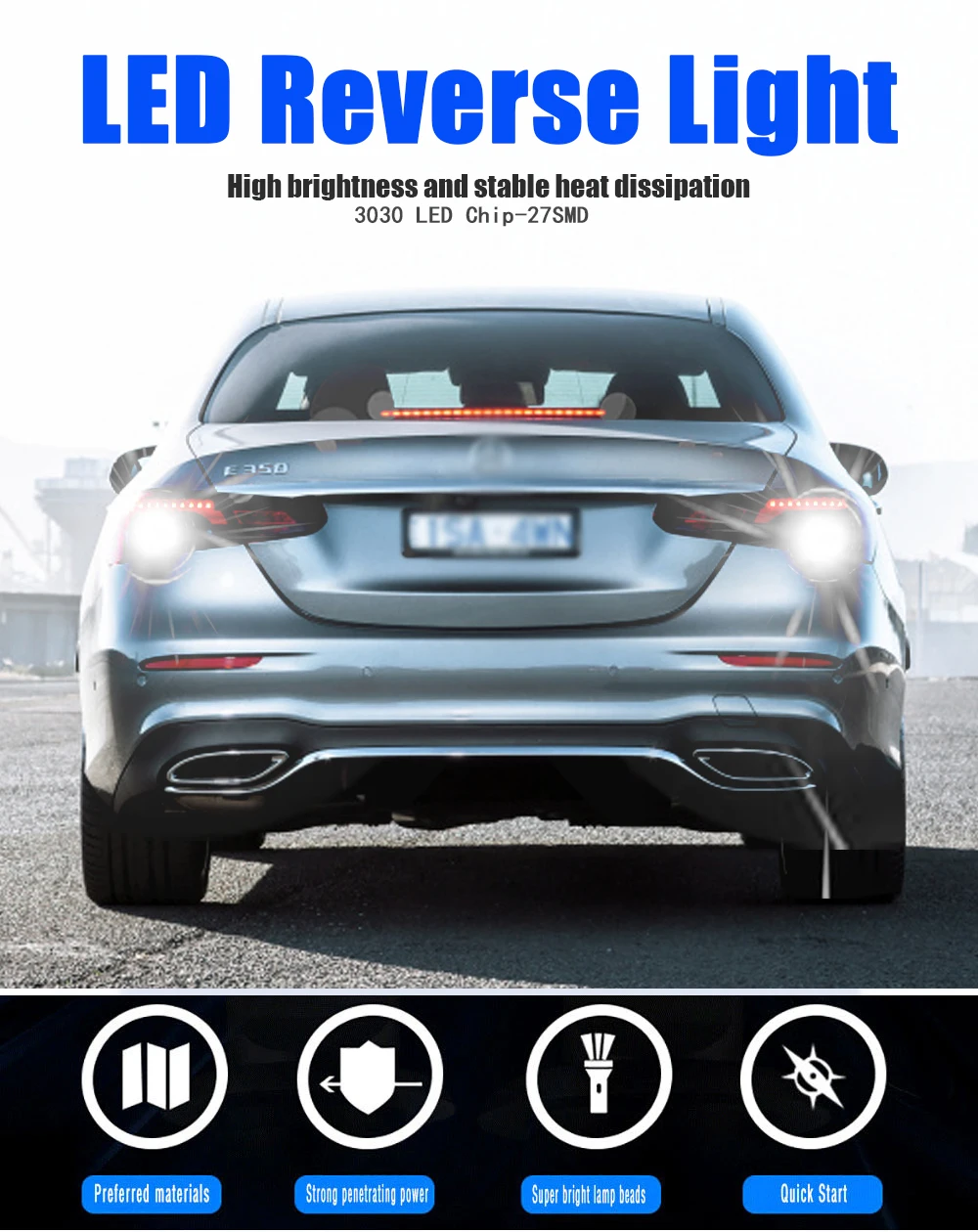 Посылка включает в себя: 2 светодиодных лампы заднего хода