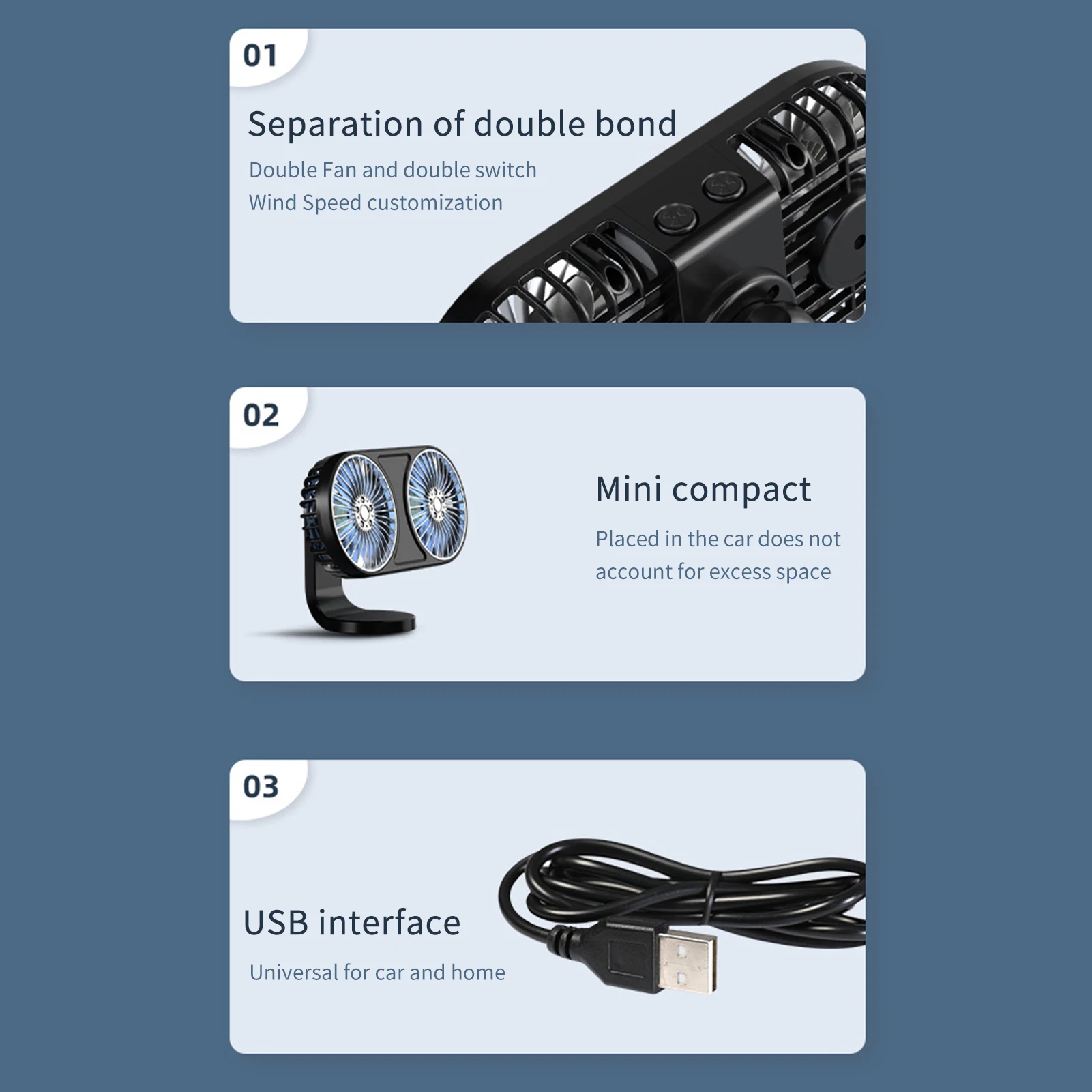 Это автомобильный вентилятор с питанием от USB. Вентилятор будет работать непрерывно и мощно внутри вашего автомобиля, обеспечивая прохладный ветер и выдувание запахов. Вентилятор с низким уровнем шума не мешает обзору, позволяя вам фокусироваться на дороге вперед.