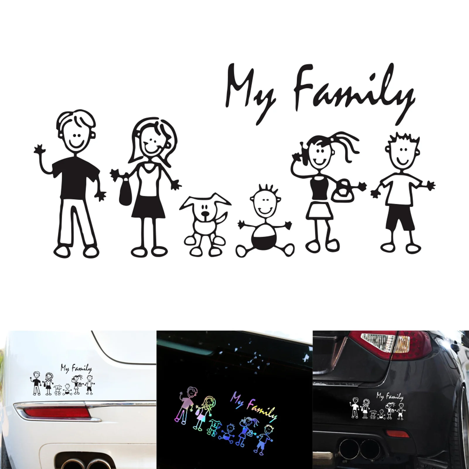 Автомобильные мультипликационные наклейки с изображением палки для больших семейных пап, мам, детей, домашних животных, собак для автомобиля, оконных бамперов, ПВХ, наклейка, домашний стикер, автомобильный Стайлинг