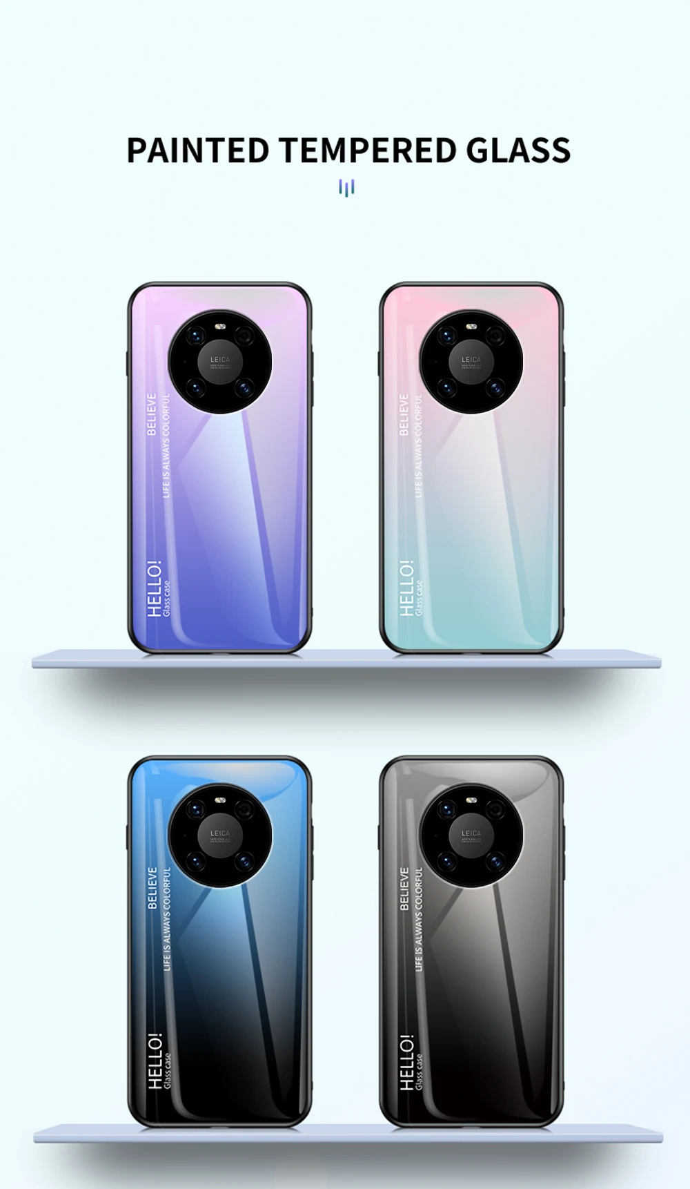 2. Красивый градиентный цвет, 9h усиленное твердое стекло, противоскользящий дизайн оправы
