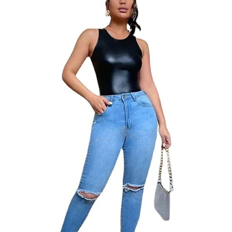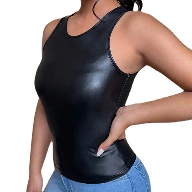 Женский модный клубный Топ, черный топ из искусственной кожи без рукавов, короткий топ с v-образным вырезом, готический Топ, летний облегающий жилетОписание товара: Материал:Искусственная кожа