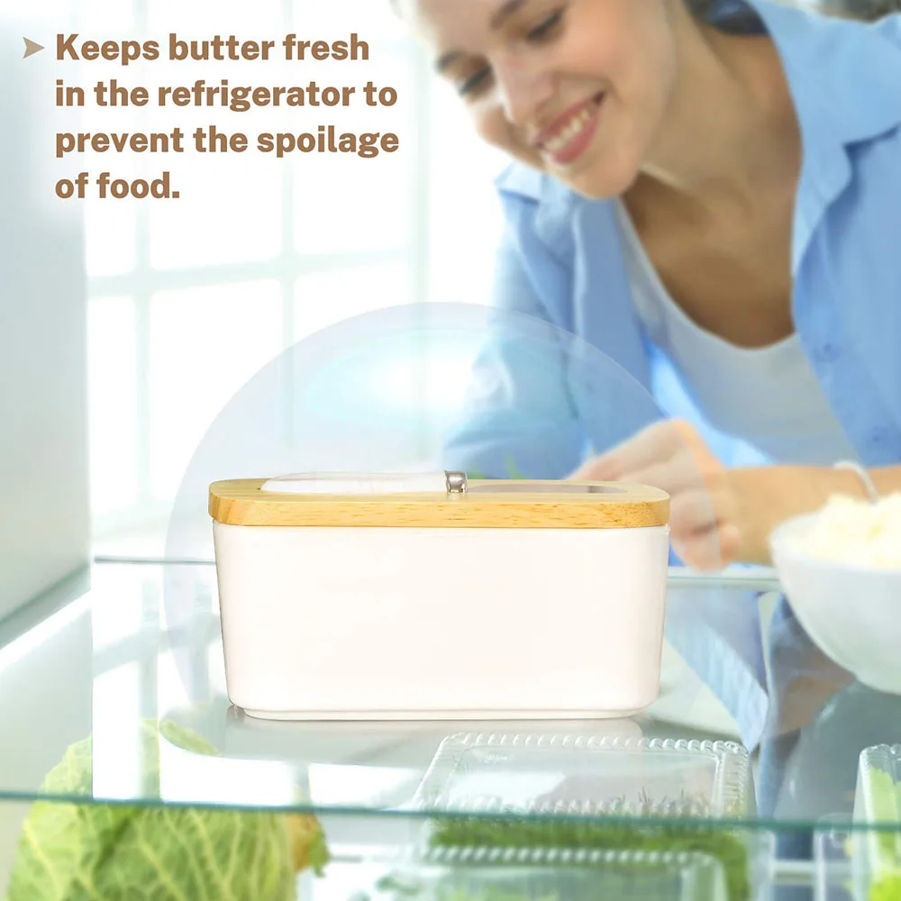 С крышкой из дуба и силиконовым уплотнительным кольцом, он изолирует воздух и сохраняет масло свежим. Сковорода для масла идеально подходит для хранения в холодильнике без запаха других продуктов.