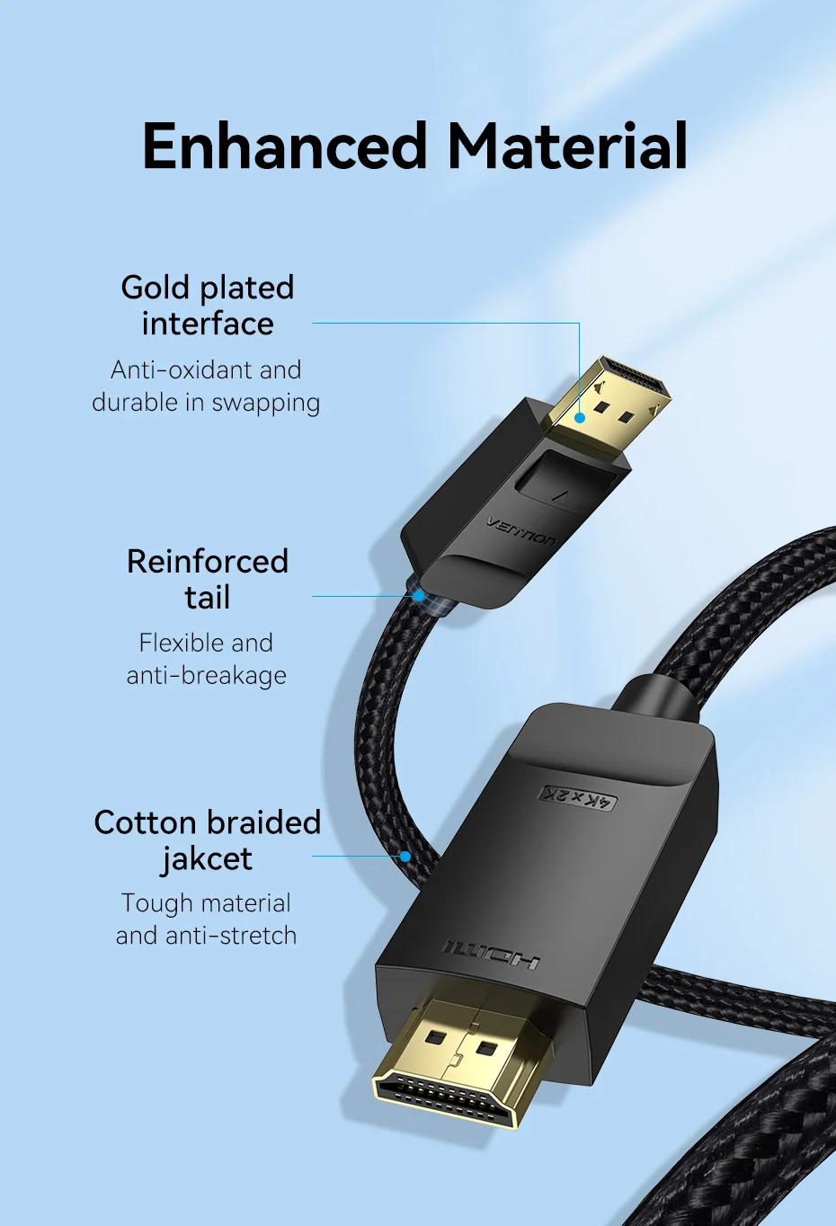 1)dp to hdmi - 4K ----- поддержка до 4K * 2K 30 Гц, оболочка из ПВХ