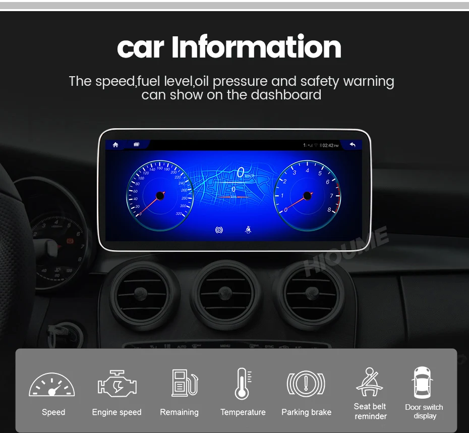 > Поддержка оригинального отображения информации о автомобиле, такого как топливо, скорость, температура и так далее.