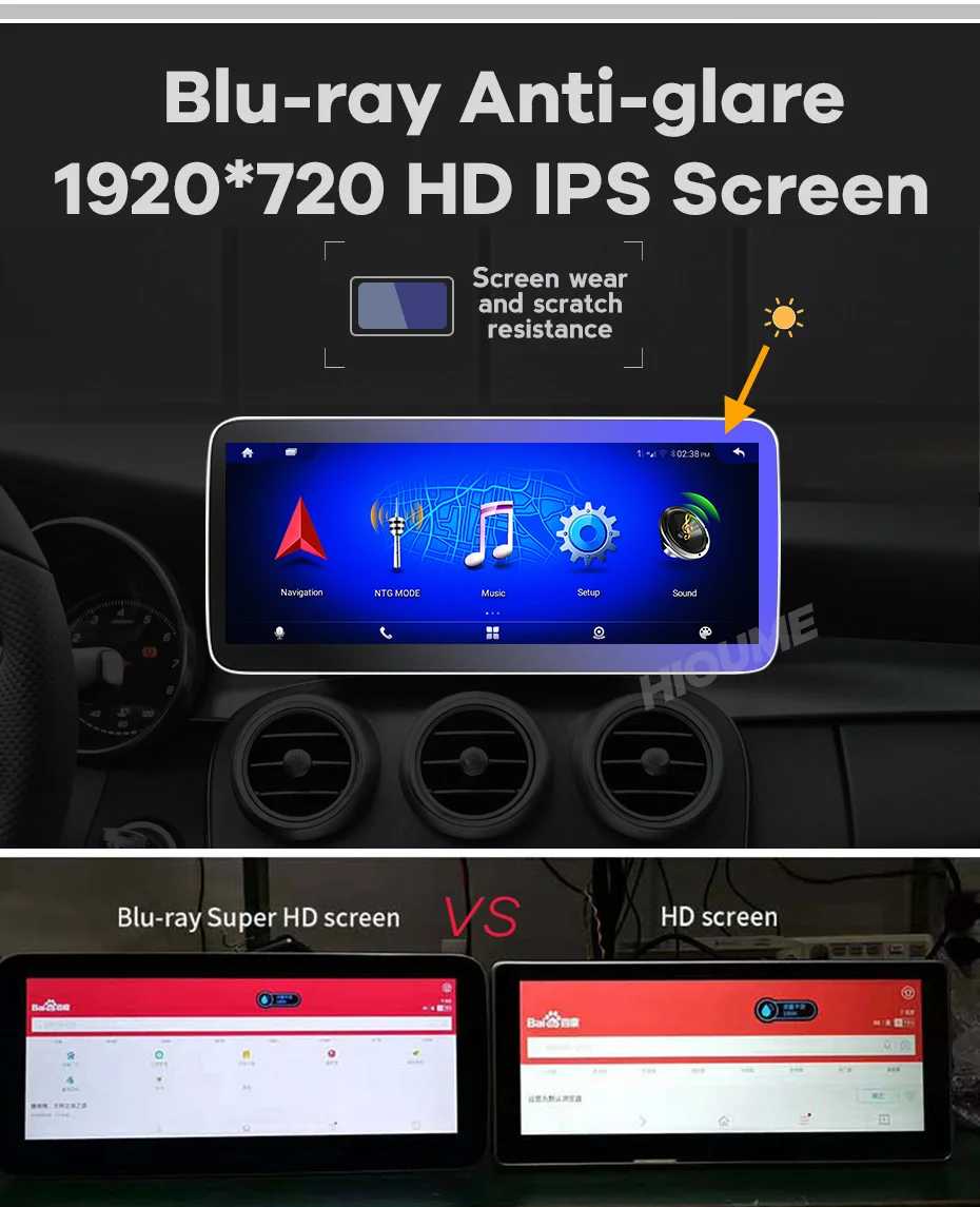 - 12,3" Премиум IPS 5-точечный сенсорный экран, четкое изображение при ультра-широкий обзор диапазон, 1920*720 разрешение HD Blu-Ray анти-блики IPS сенсорный экран