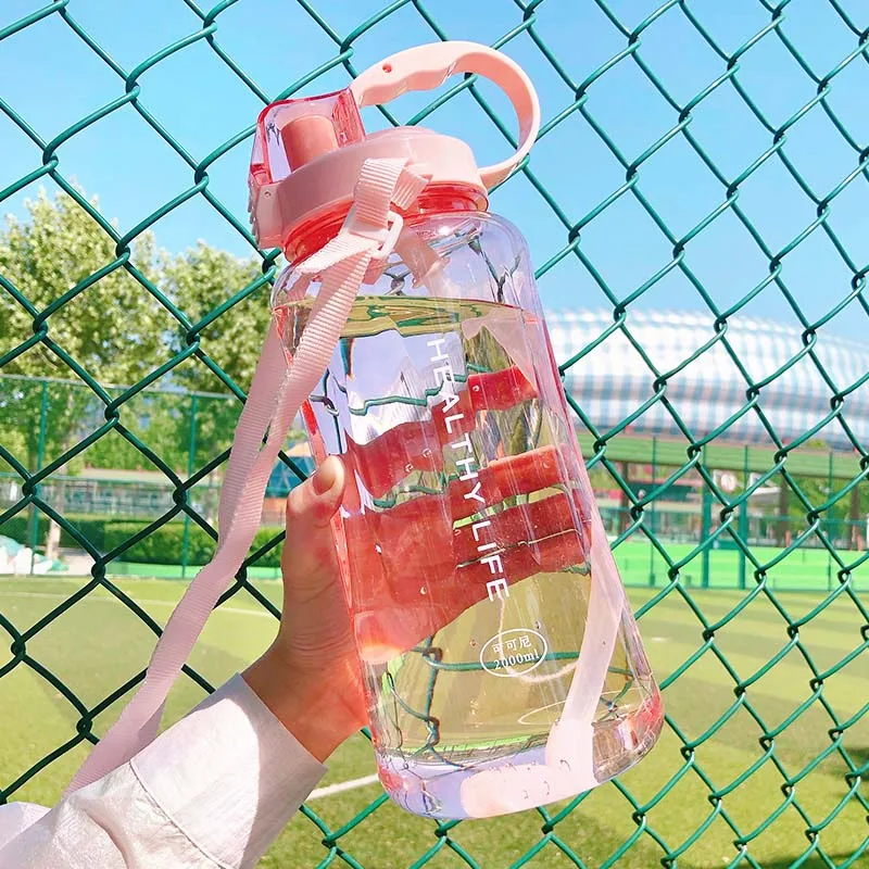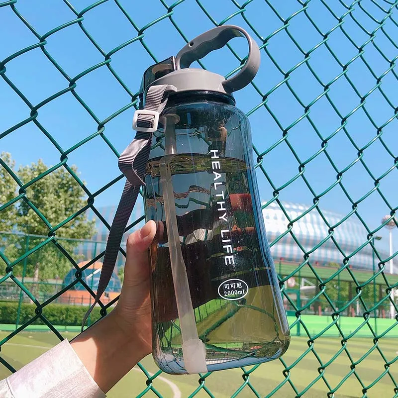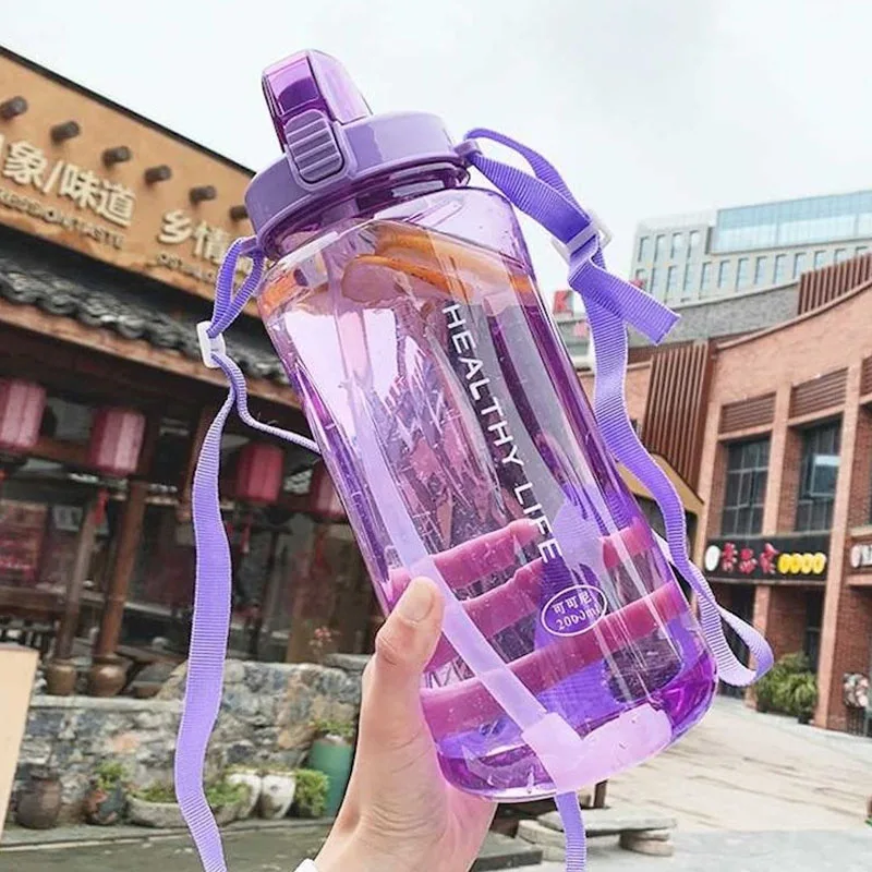 4 Candy Color Wholesale Price Healthy Life 1000ml/2000ml 2L Straw Sports Hiking Fitness Gym Food Grade Plastic Water Bottle