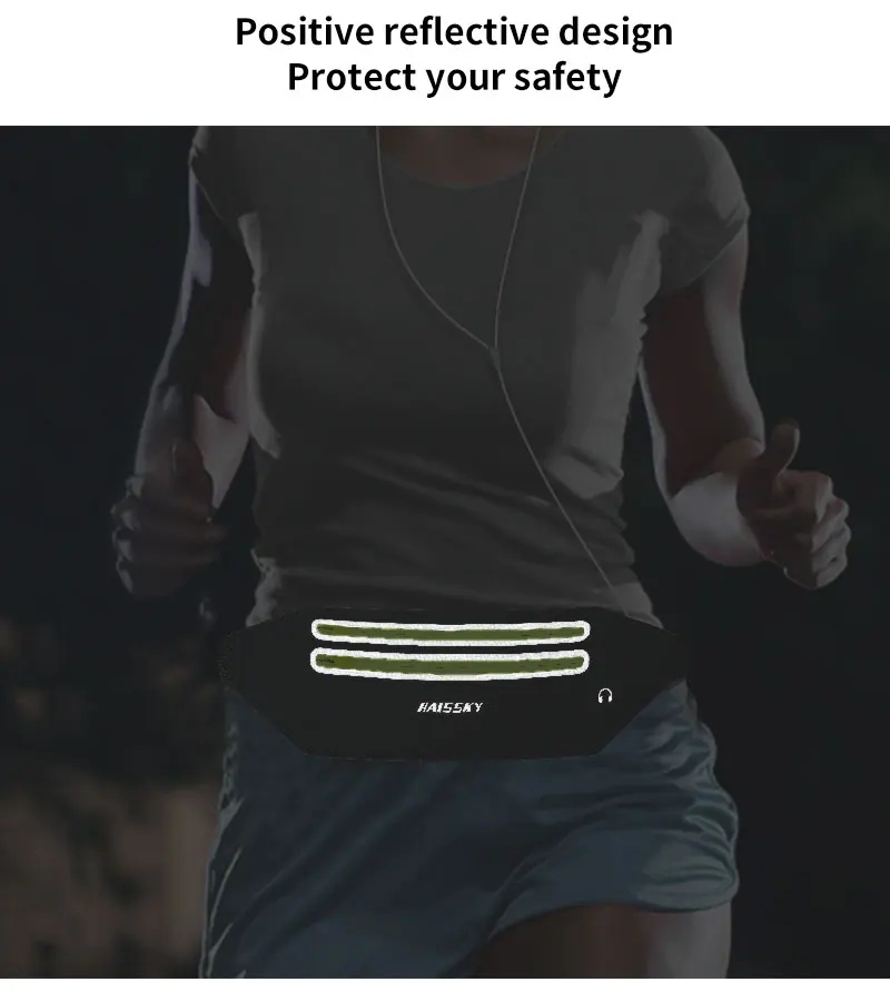 +Светоотражающая полоса:С дизайном светоотражающей ленты в передней части кармана, он легко отражает светильник и делает ваш поясной пакет видимым при условии низкого светильник