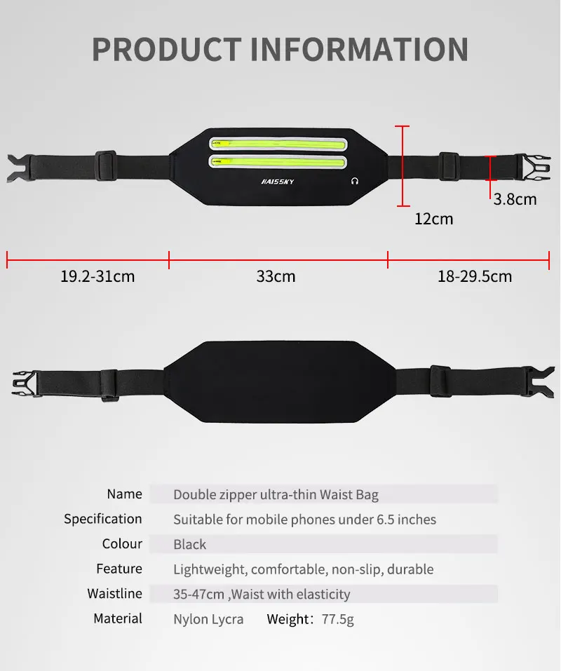 +Регулируемый: Пояс этой поясной сумки очень растягивается и регулируется, регулируемый ремень подходит для талии от 29,9 "(76 см) до 48,8"(124 см)