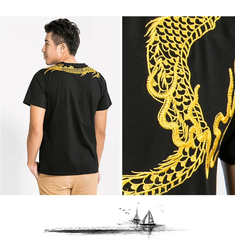 Летняя мужская футболка с вышивкой дракона, Хлопковая мужская футболка с коротким рукавом, Sukajan, уличная одежда, роскошная Мужская Дизайнерская одежда