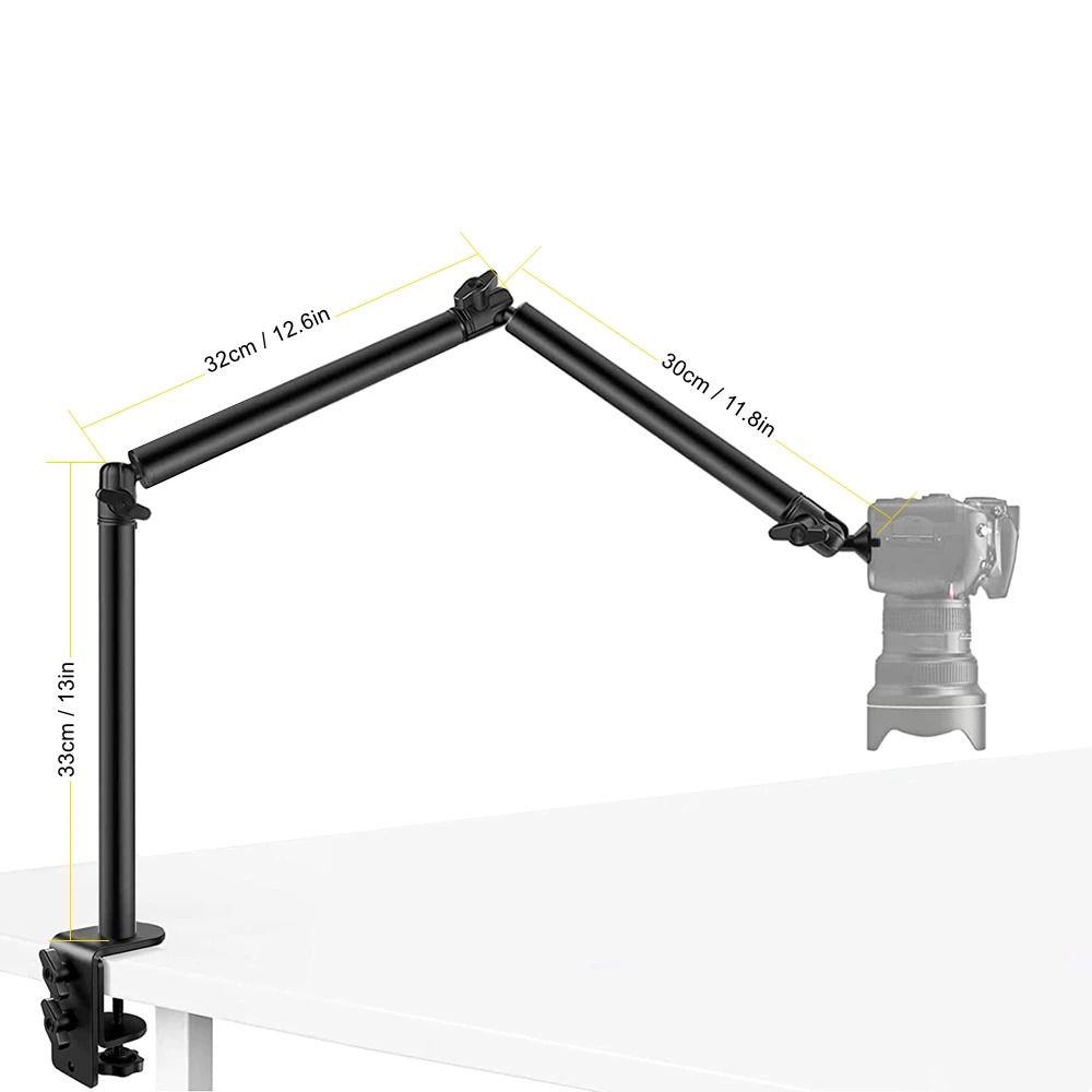 【Extra достичь Length】: Добавьте около 29,5 см/11,6 В-75 см/29,5 в до настольное крепление. 2 секции отстегиваются, вы можете выбрать нужную длину.