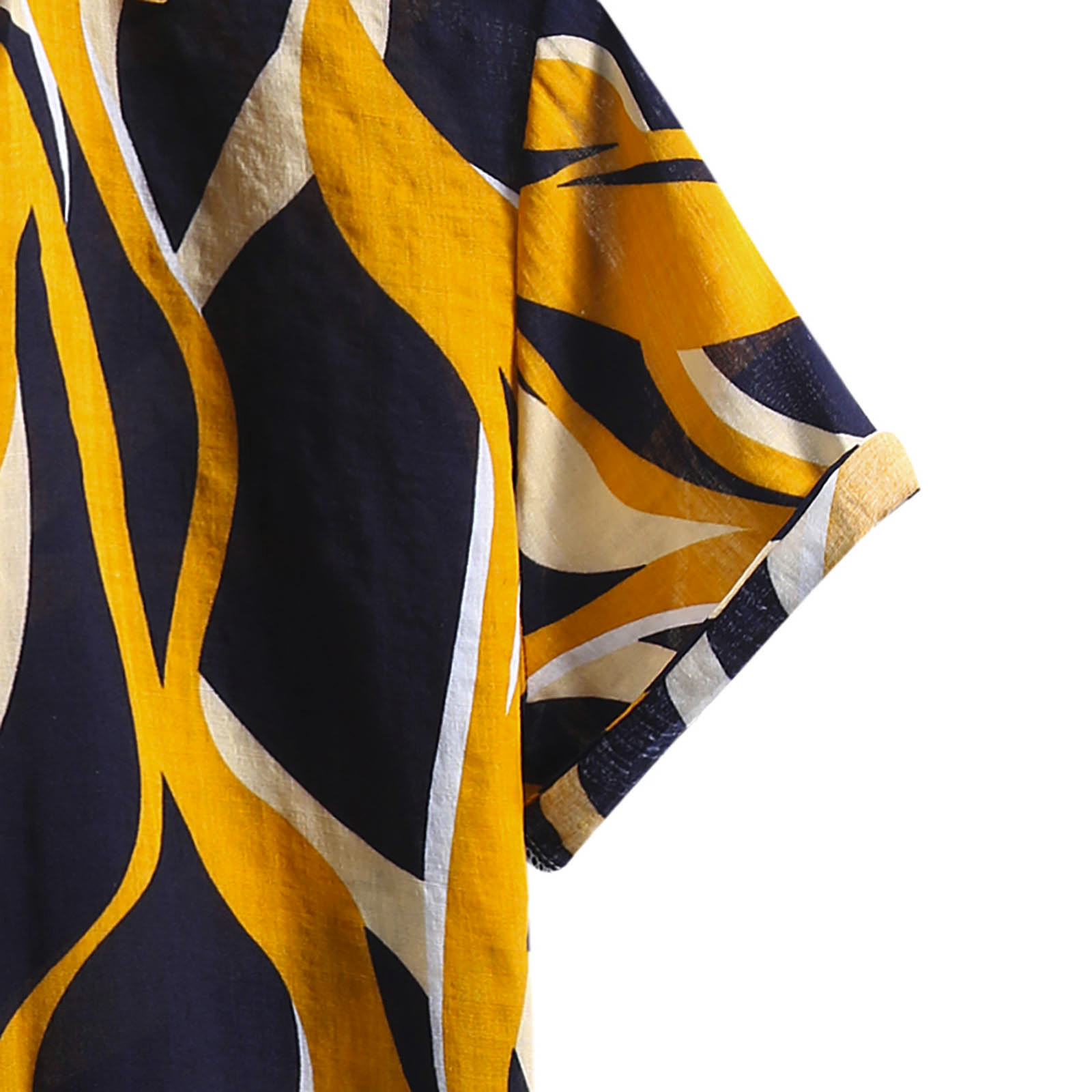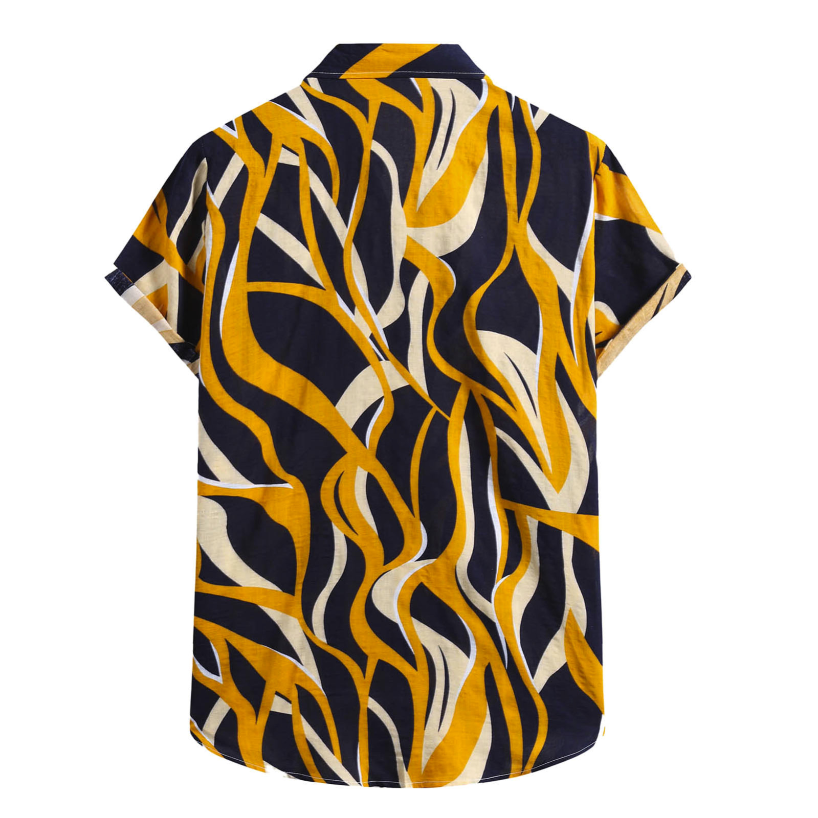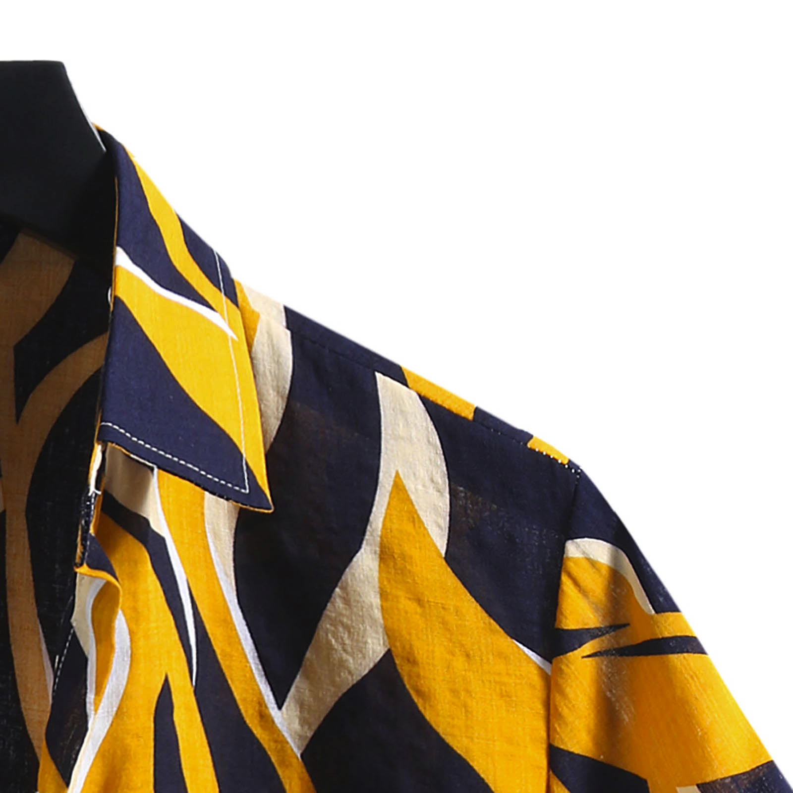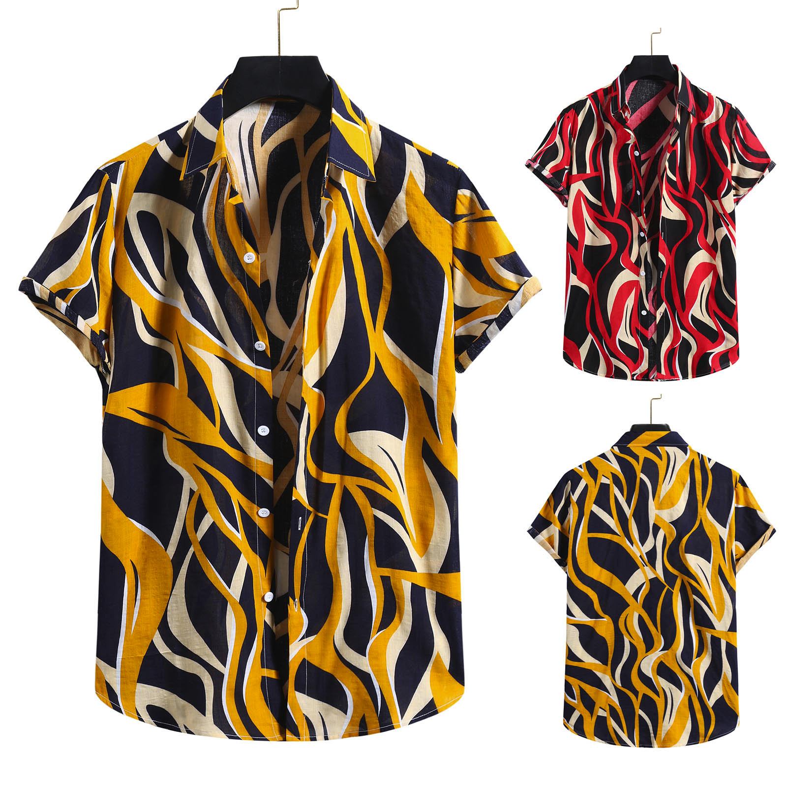 Мужская модная хлопковая льняная гавайская рубашка с короткими рукавами и принтом на пуговицах, Топ