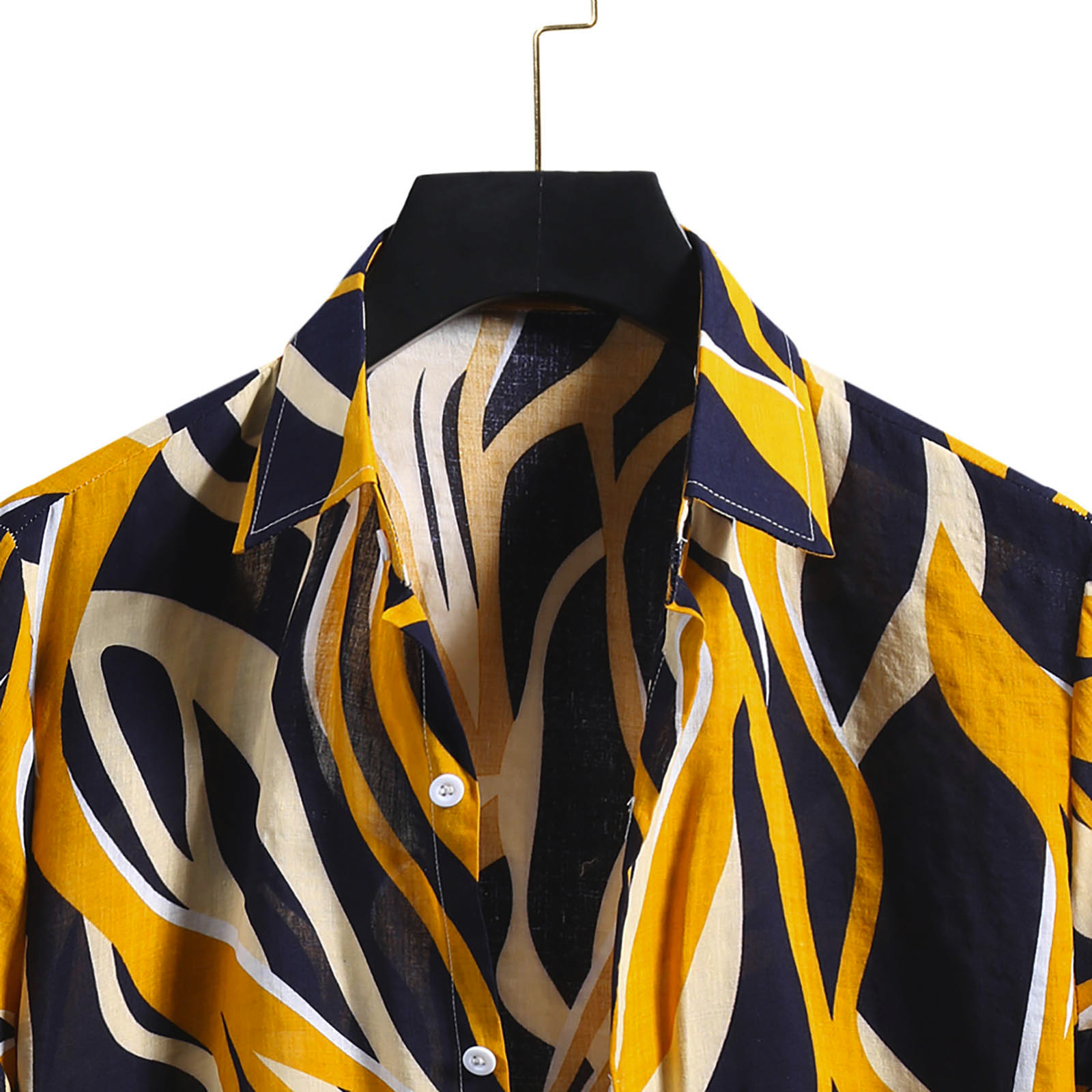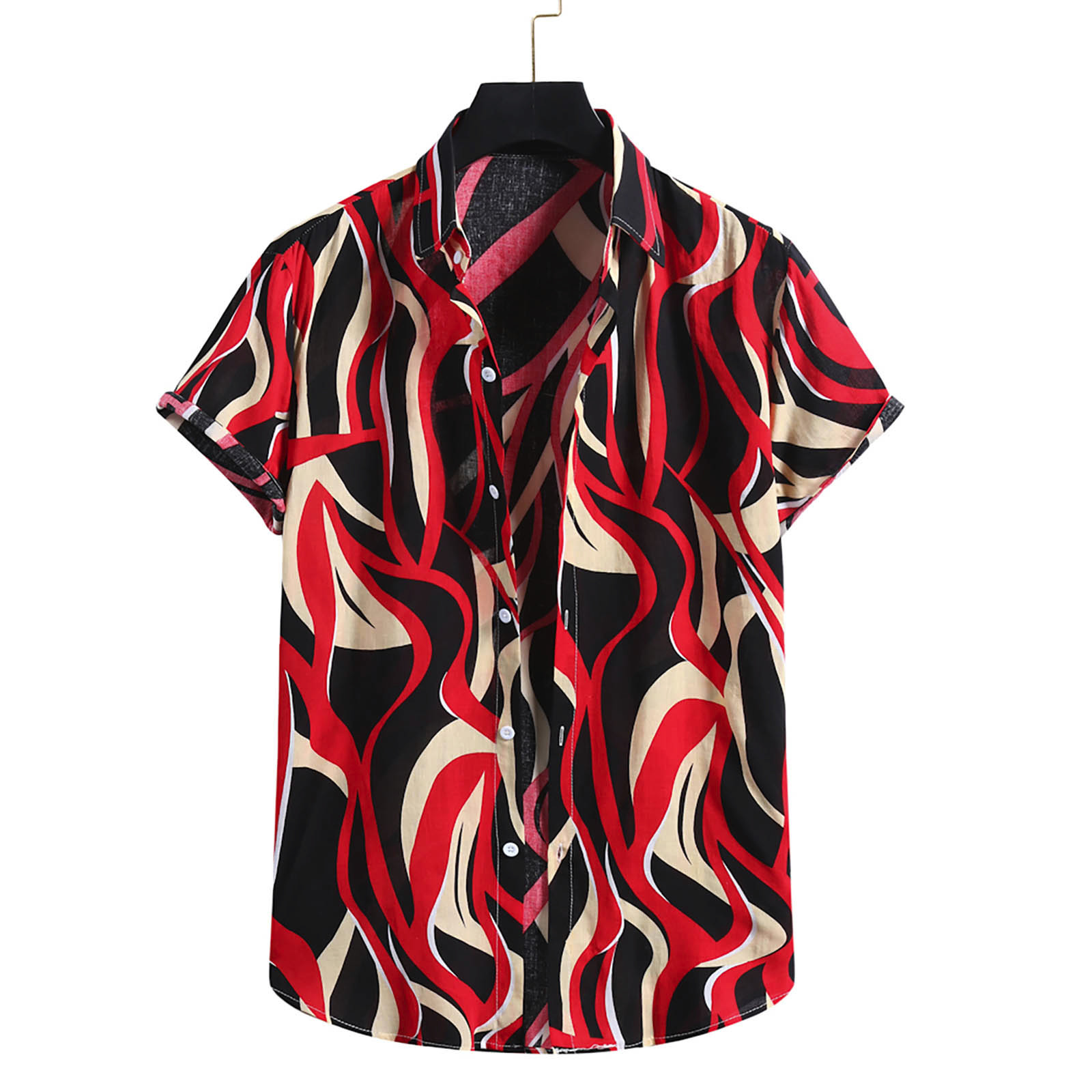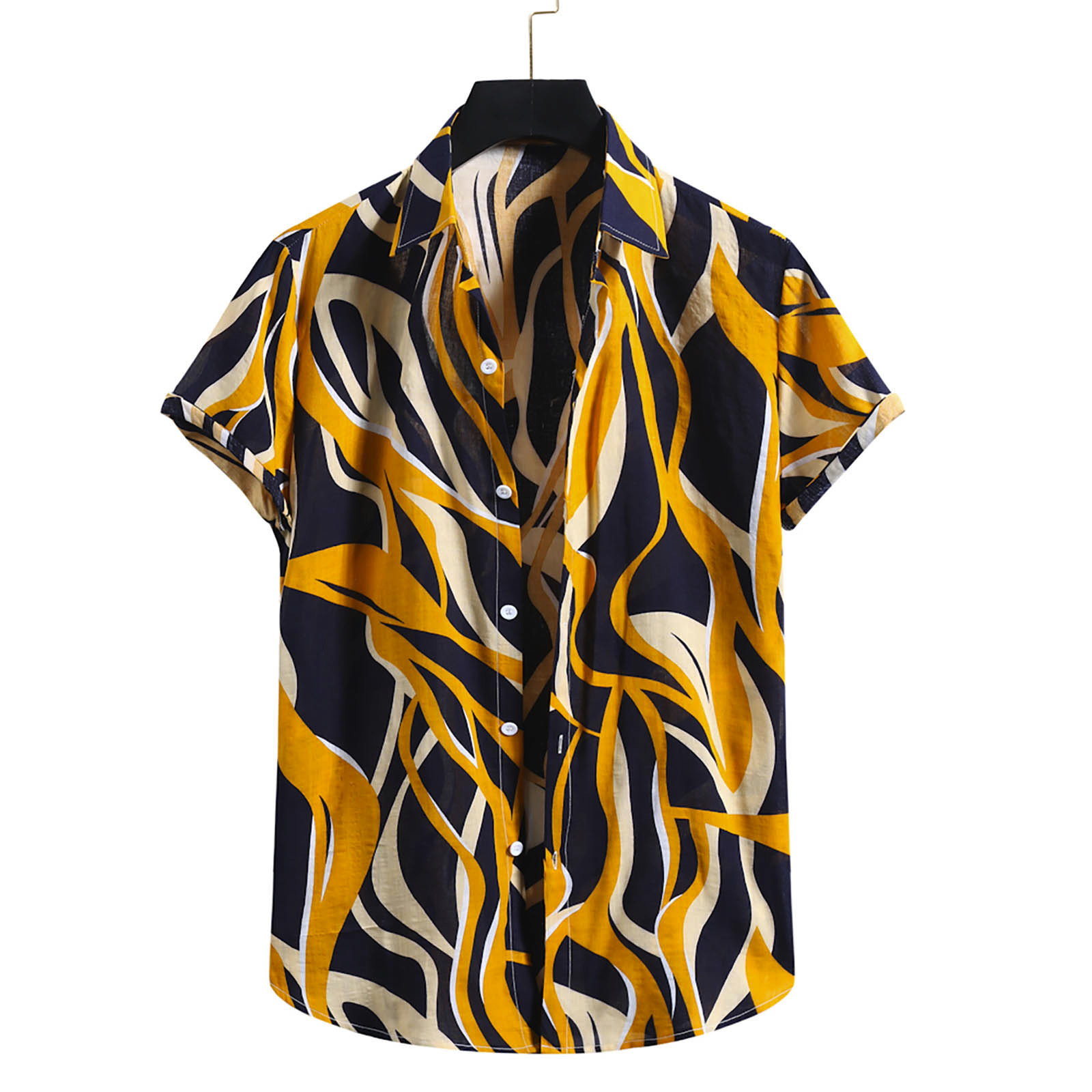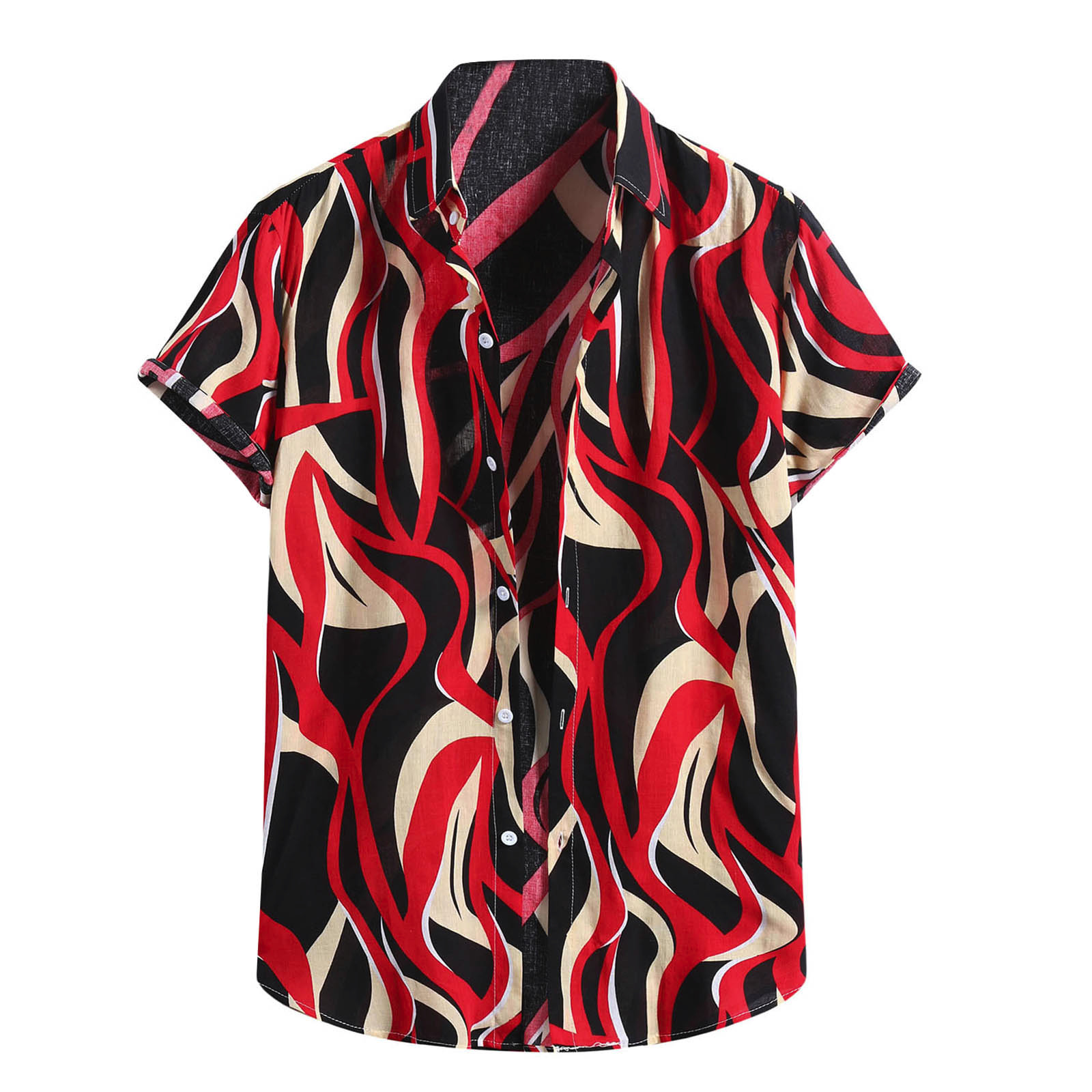 Мужская модная хлопковая льняная гавайская рубашка с короткими рукавами и принтом на пуговицах, Топ