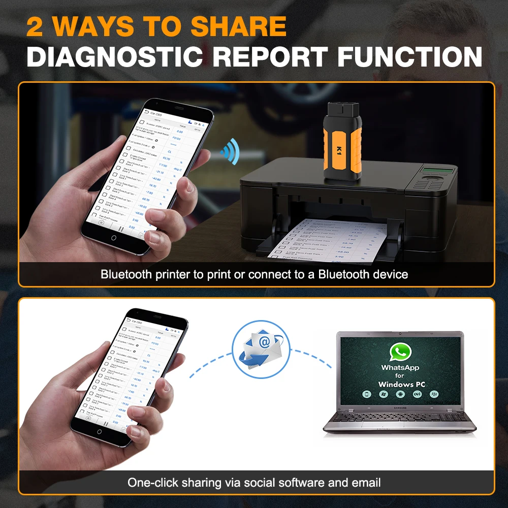 Сканер K1 PLUS obd2 поддерживает функции кодирования ECU многих брендов, таких как Mercedes-Benz и BMW. Он также поддерживает быструю диагностику с помощью одного ключа VIN сканирования.