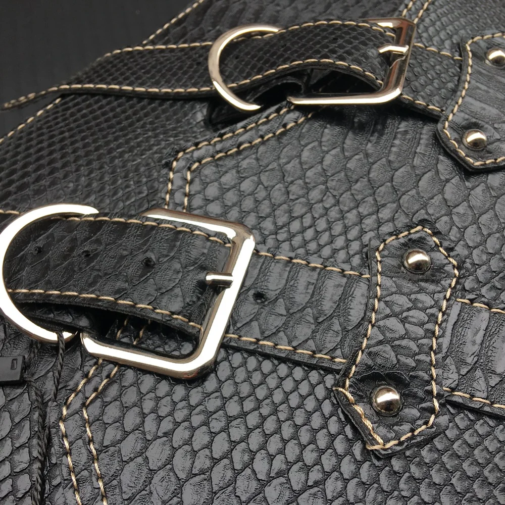 1. Изготовлен из отличного качества мягкой из искусственной кожи и металлических пряжек. 2. Усиленный кожаный лист помогает сумке держать форму. 3. Два мешка с большой емкостью. Может держать инструменты и (мазут) бутылки. 4. Храните ваши вещи в безопасности во время езды; Сделайте ваш мотоцикл привлекательным. 5. Поставляется с 3 быстроразъемными для крепления задней стороны (не требуется бурение). 6. Универсальный для большинства мотоциклов и моделей.