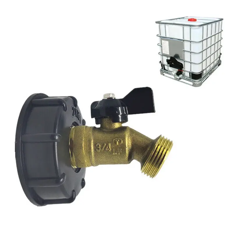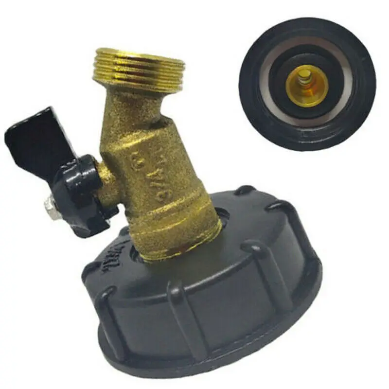 The IBC Tank Adapter (converter) converts a 2-inch thick thread (actually 60 MM) into a BRASS Garden Hose Ball Valve/ Faucet 1/4 Ring Connector!