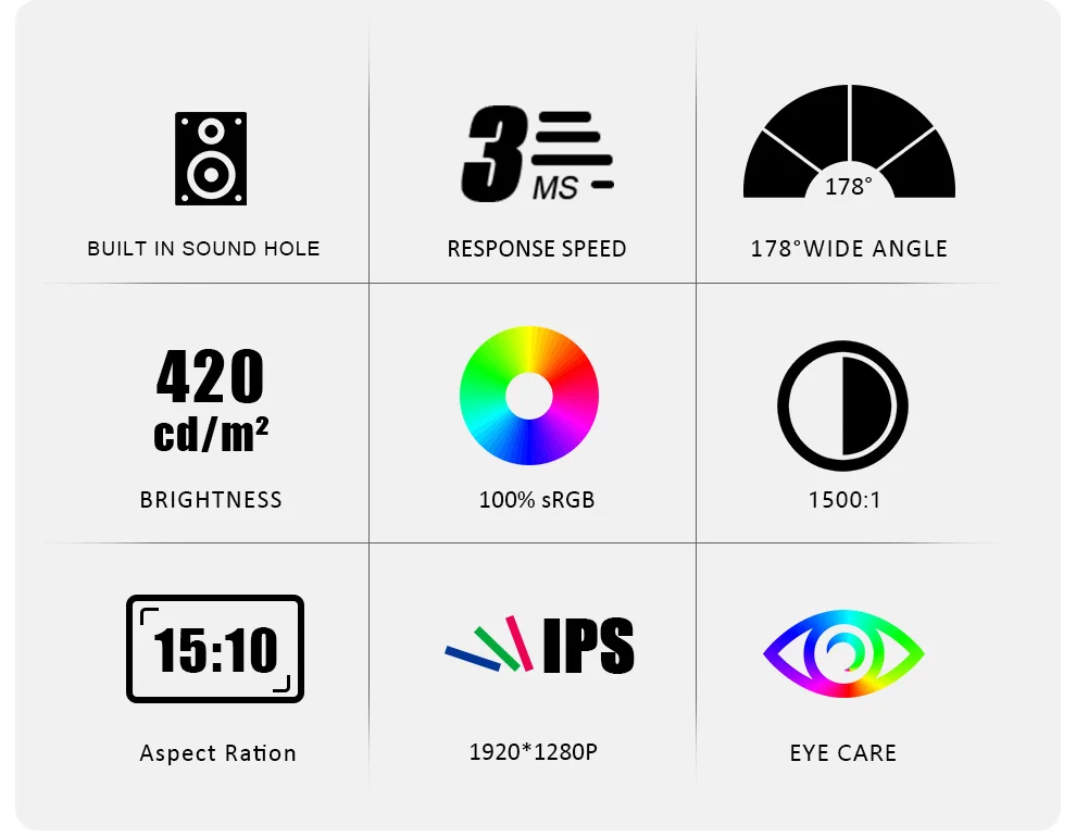 Широкоугольный экран 1920*1280P + HDR IPS 178 °