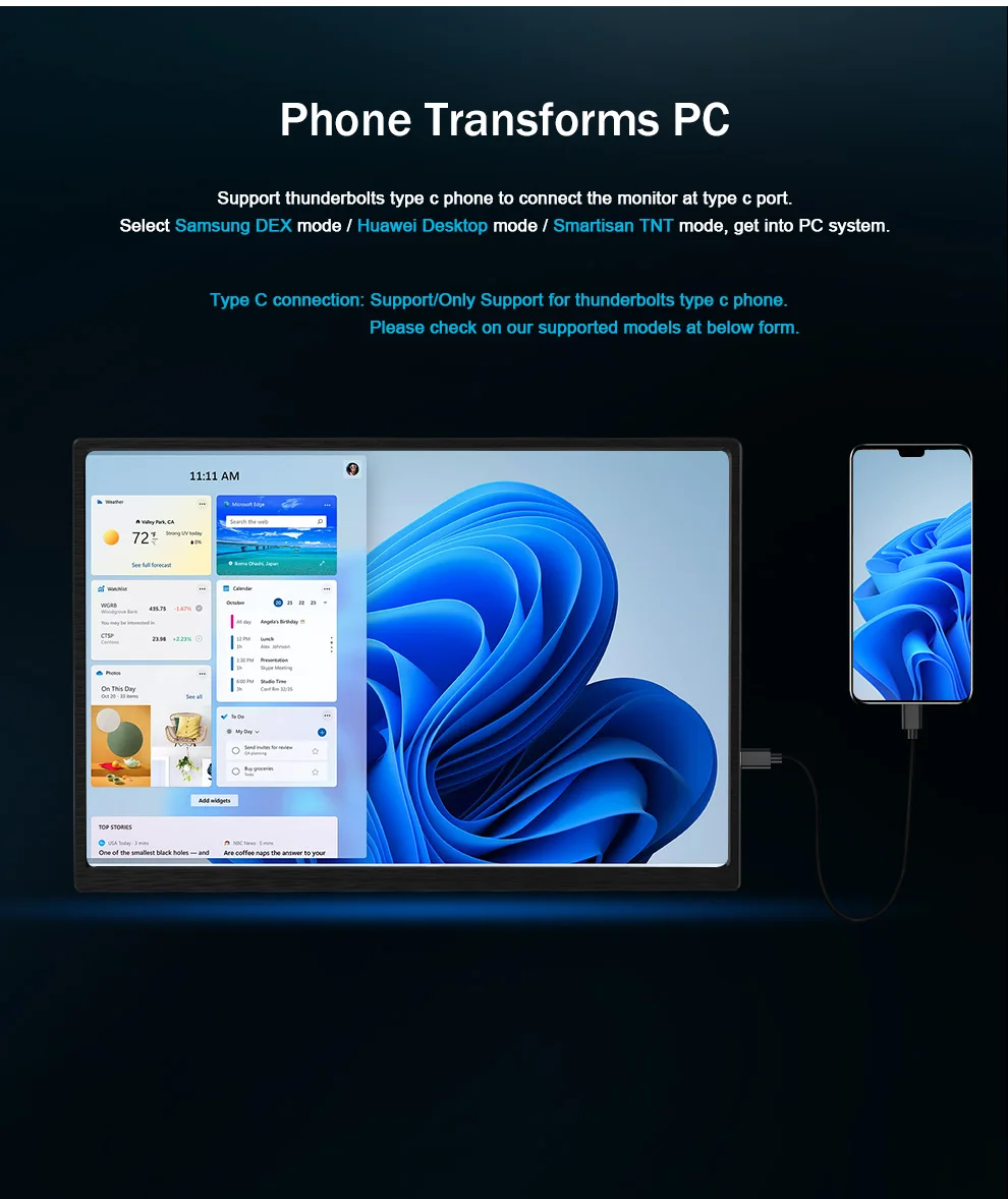 Совместимо с телефоном Thunderbolts и ноутбуком черезТип CСоединение