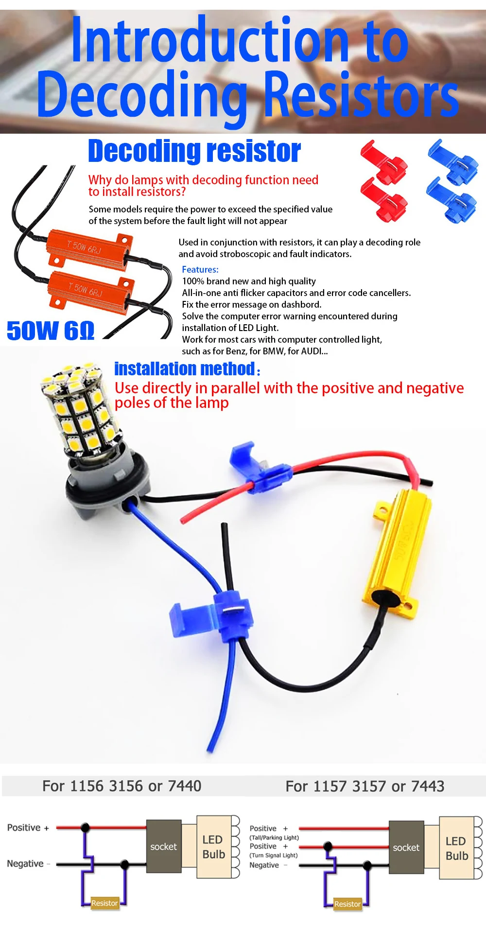 Декодирующие огни могут не подходить для всех моделей, потому что есть специальные модели автомобилей, которые должны сотрудничать с резисторами, чтобы светодиодный свет работал должным образом.
