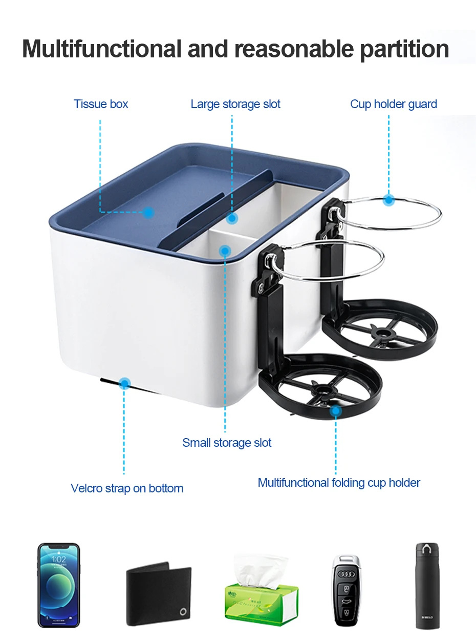 2. Оснащен 2 Складными подстаканниками, с держателем на мобильный телефон, который может поддерживать мобильный телефон.