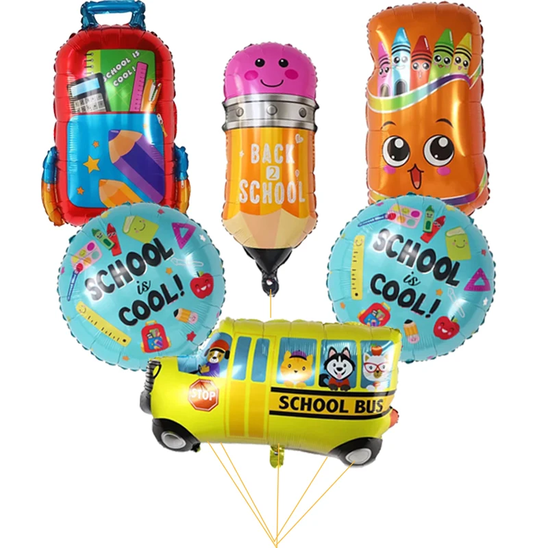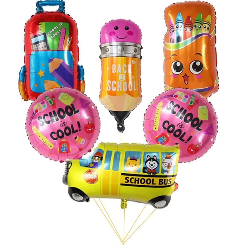 6Pcs Back To School Balloon Set Welcome Back Pencil Eraser Bag Globo School Start To Kindergarten Enrollment Decorations Kid Toy